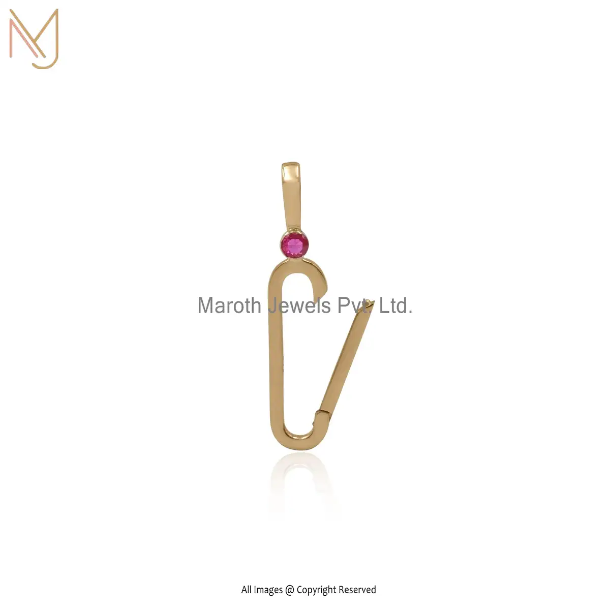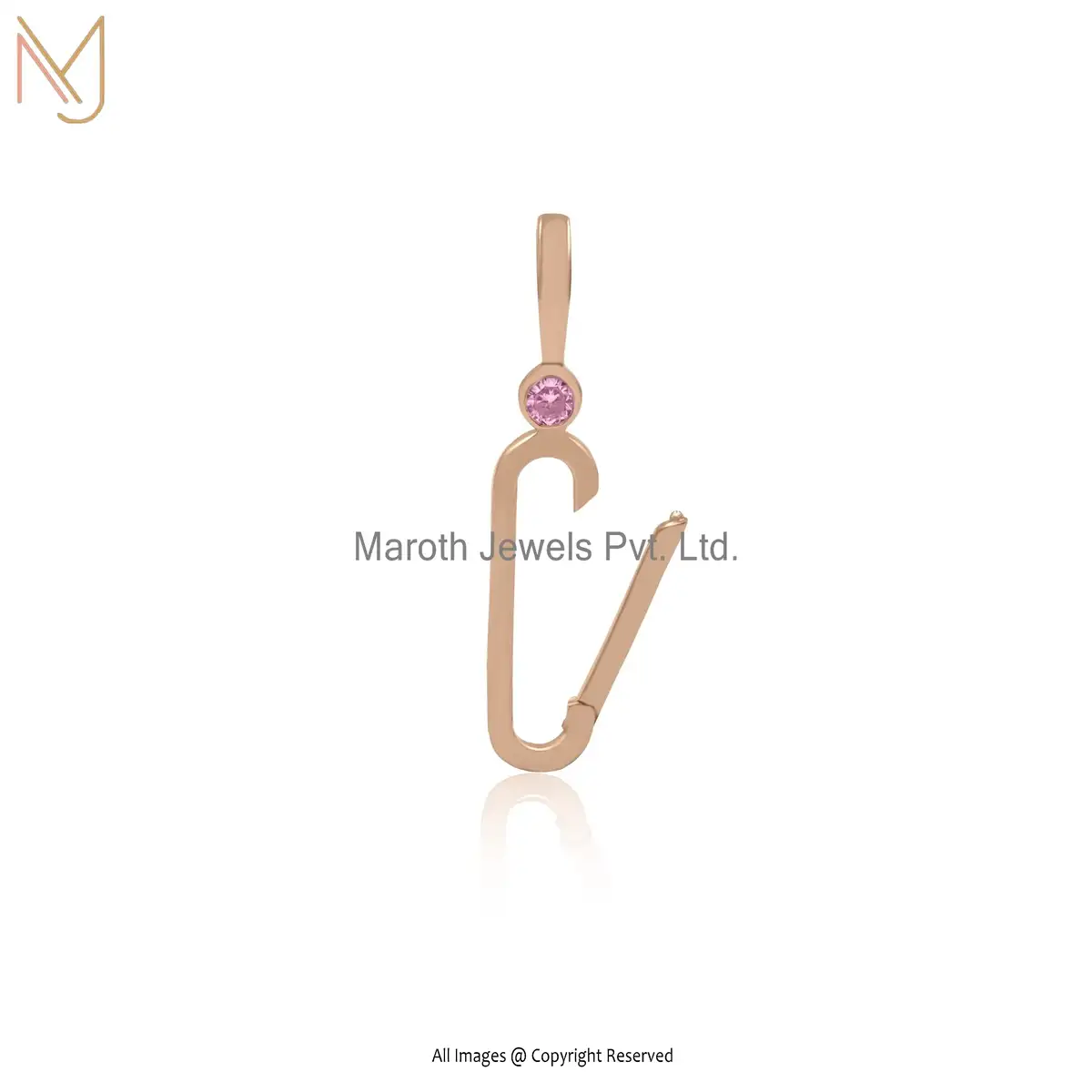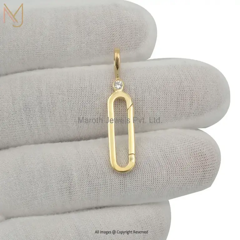 925 Silver Yellow Gold Plated Cubic Zircon Learg Elongated Enhancer Charm Holder USA