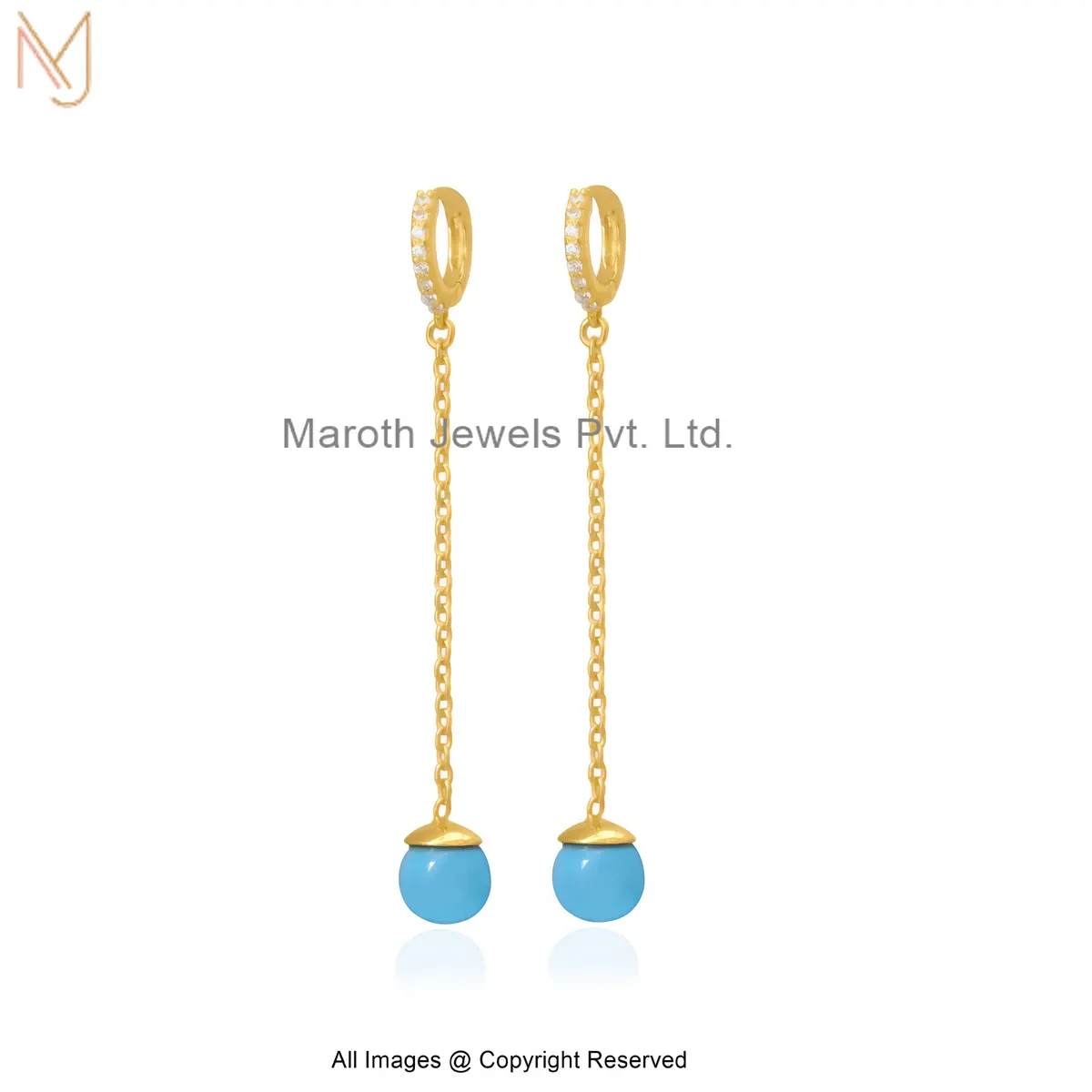 925 Silver Yellow Gold Plated Cubic Zircon Minimal Turquoise Chain Drop Earring Jewelry Supplier