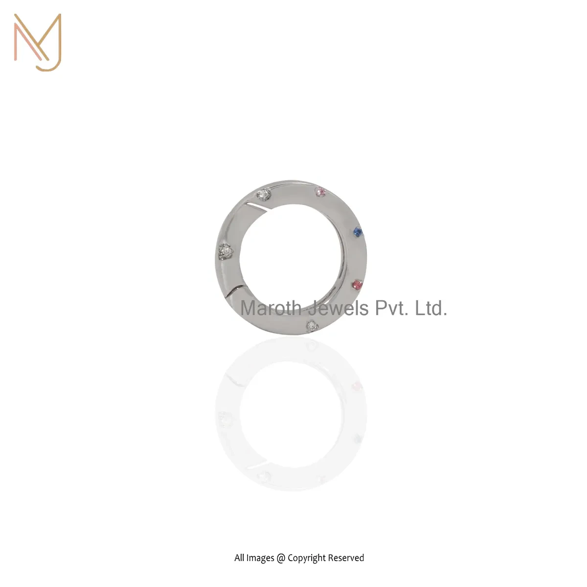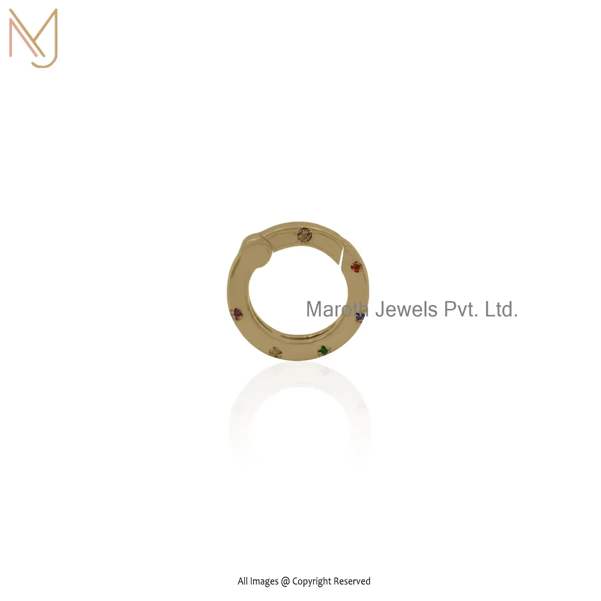 925 Silver Yellow Gold Plated Cubic Zircon Multi Gemstone Round Charm Push Lock Jewelry Supplier