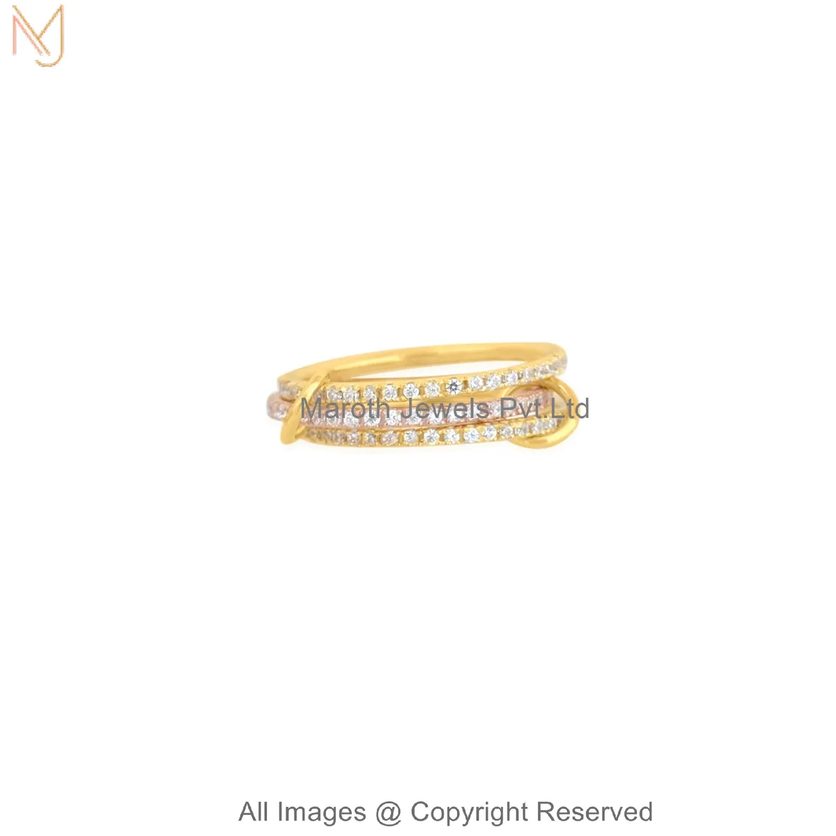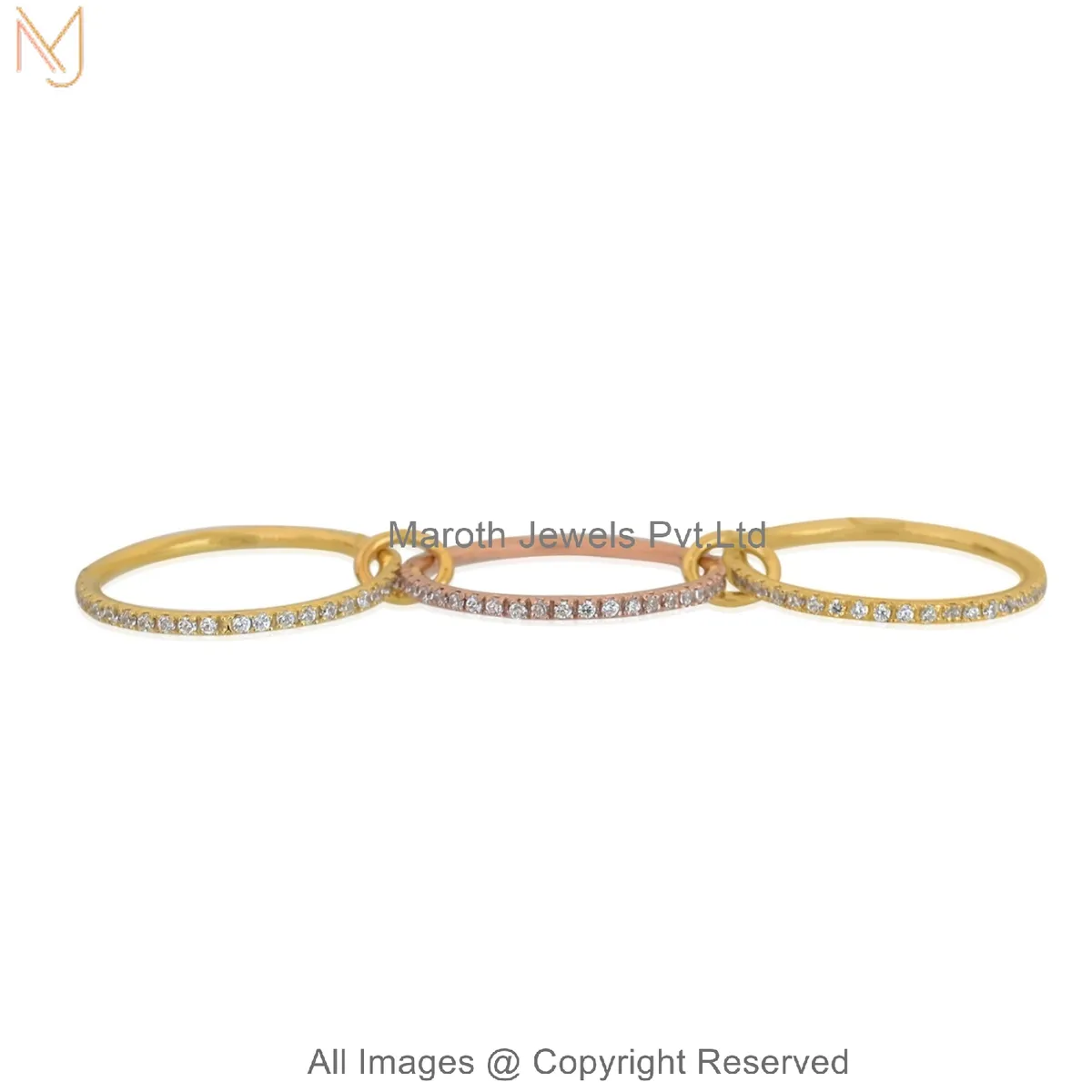 925 Silver Yellow Gold Plated Cubic Zircon Multi-Link Band Connector Ring Manufacturer