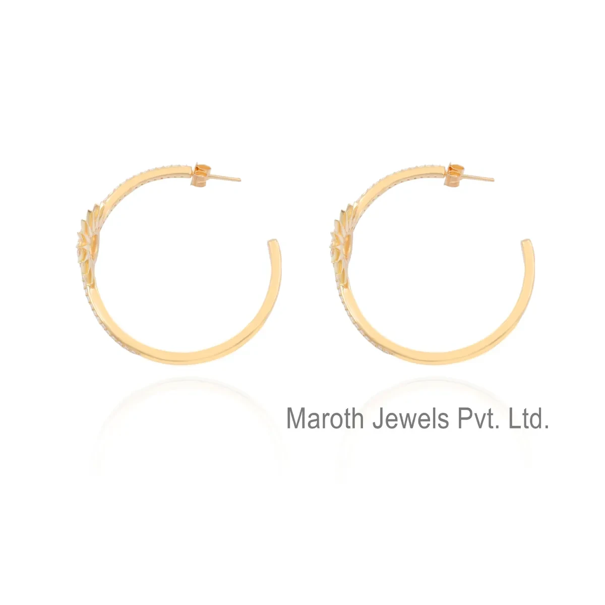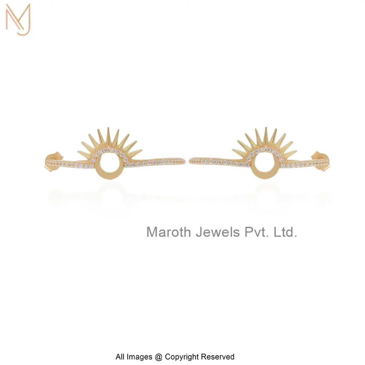 925 Silver Yellow Gold Plated Cubic Zircon SunShine Bright Hoops Earring Custom Jewelry