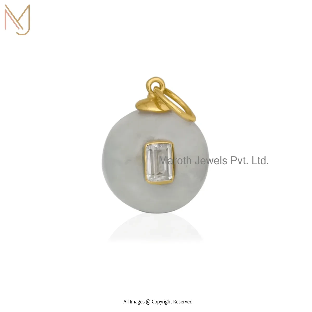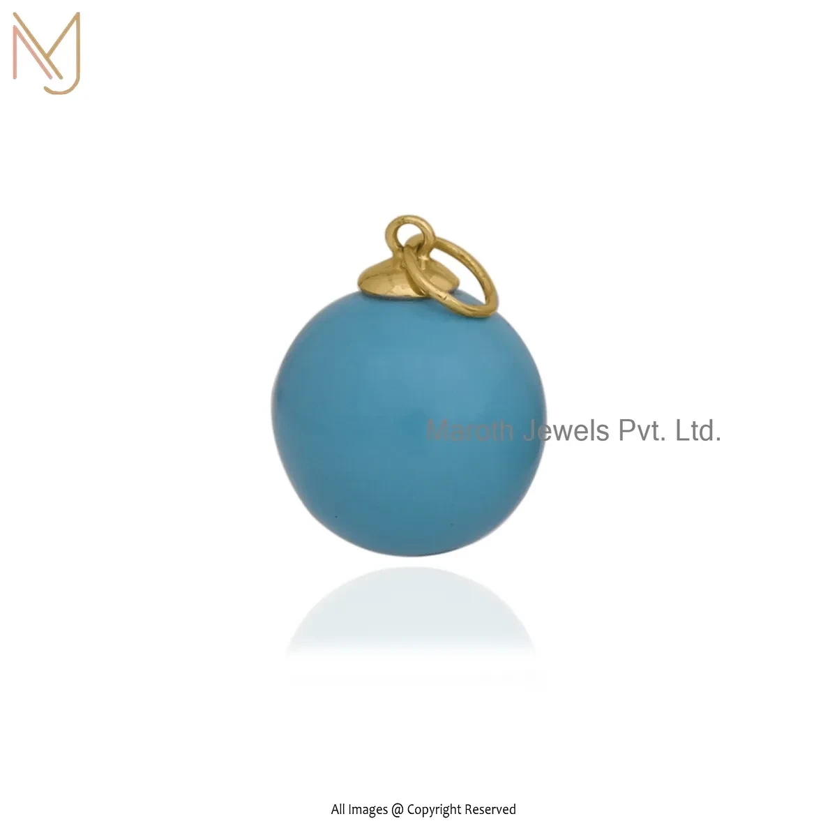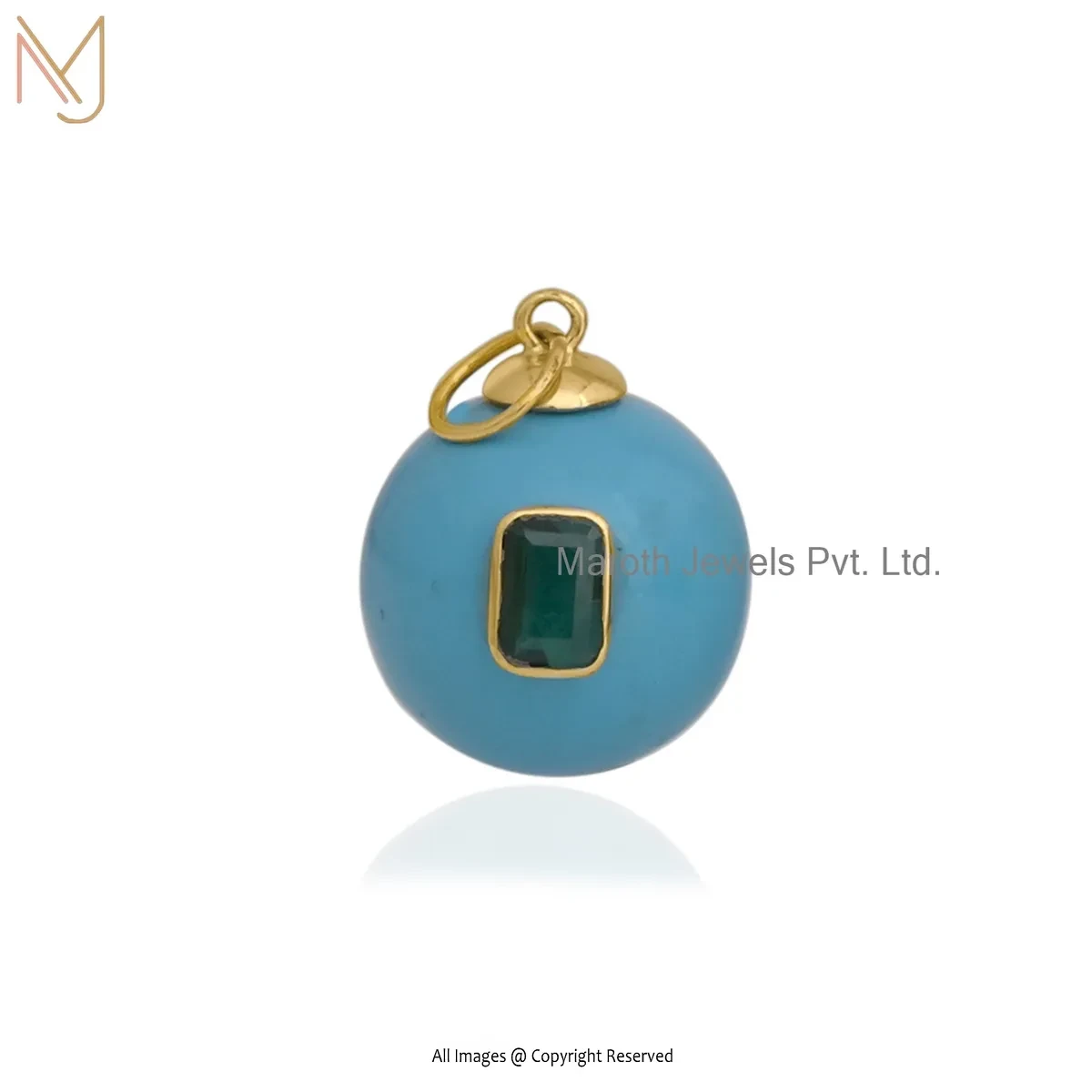 925 Silver Yellow Gold Plated Cubic Zircon & Turquoise Ball Pendant Manufacturer