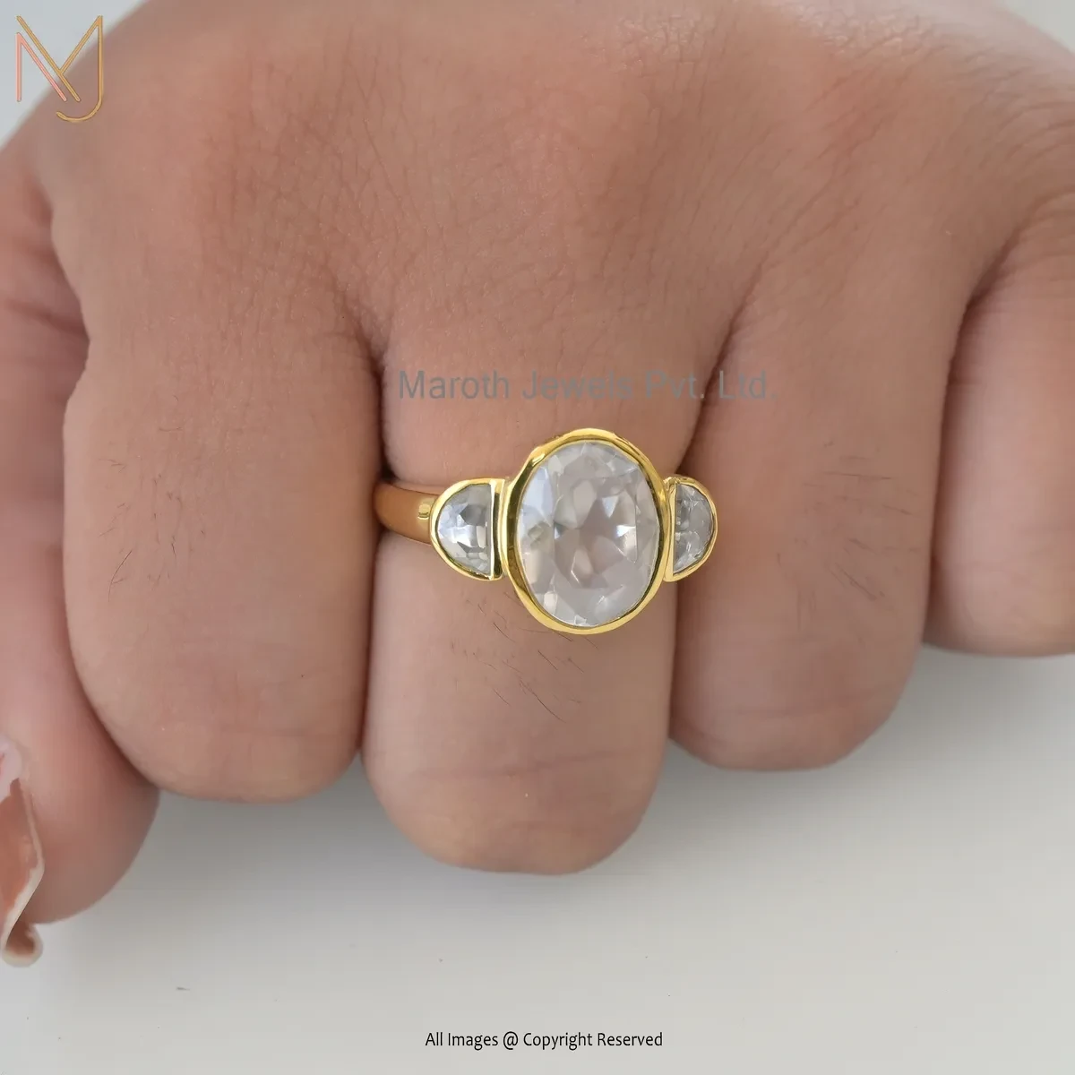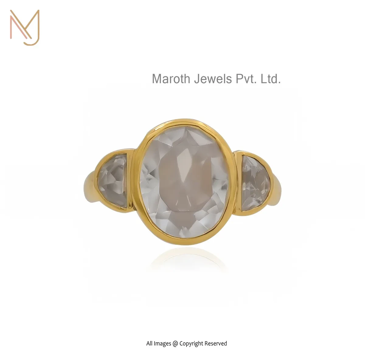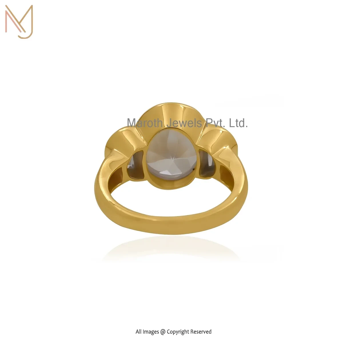 925 Silver Yellow Gold Plated Cubic Zircon Unique Oval Engagement Ring Manufacturer