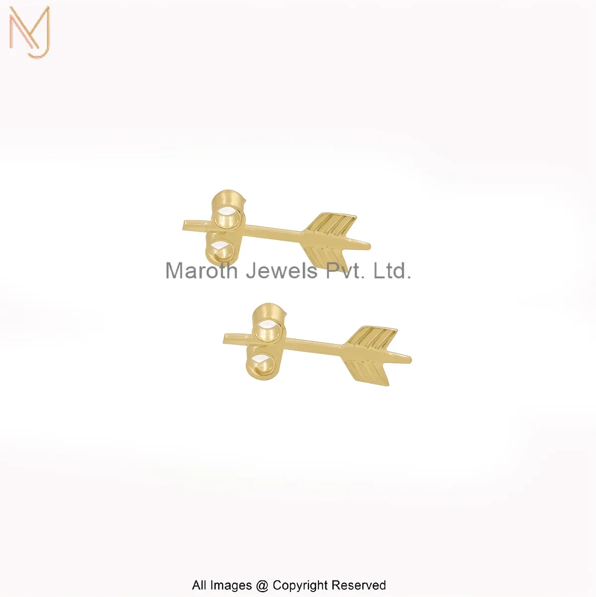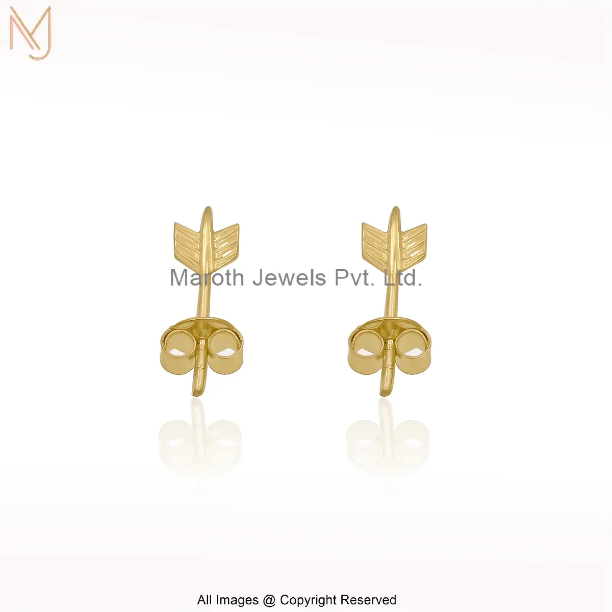 925 Silver Yellow Gold Plated Cupids Arrow Studs Earrings Custom Jewelry