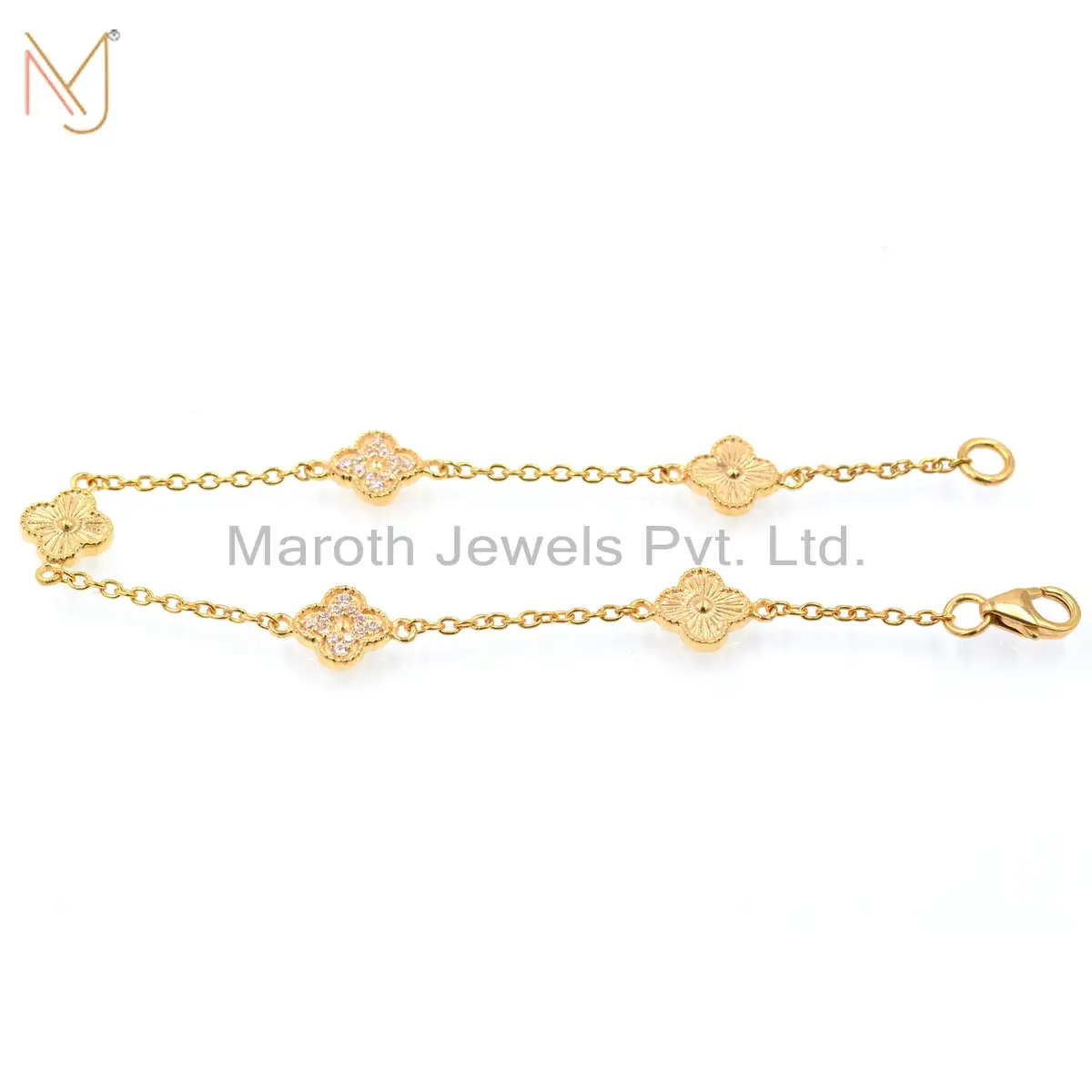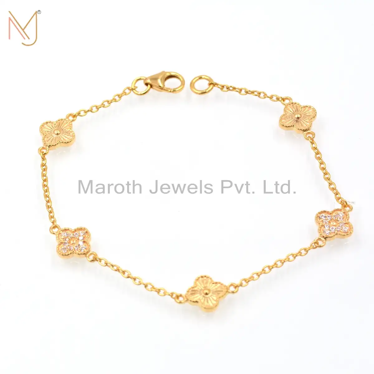 925 Silver Yellow Gold Plated CZ Flower Bracelet Jewelry Supplier