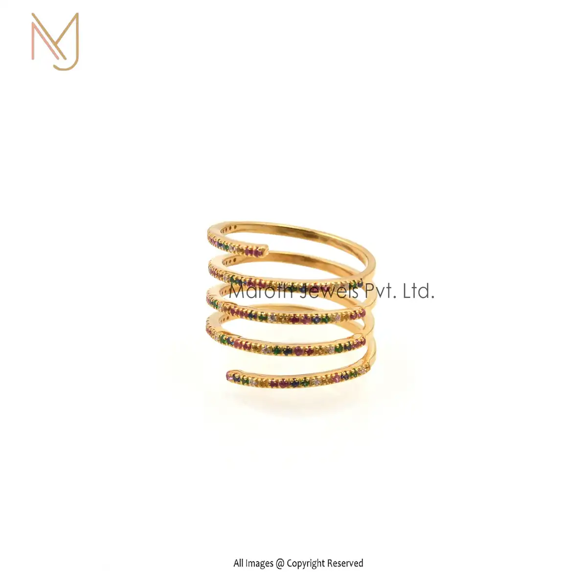 925 Silver Yellow Gold Plated CZ Multi Gemstone Band Ring Manufacturer