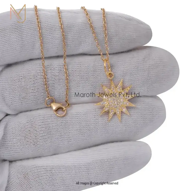 925 Silver Yellow Gold Plated CZ Star Charm Pendant Jewelry Supplier