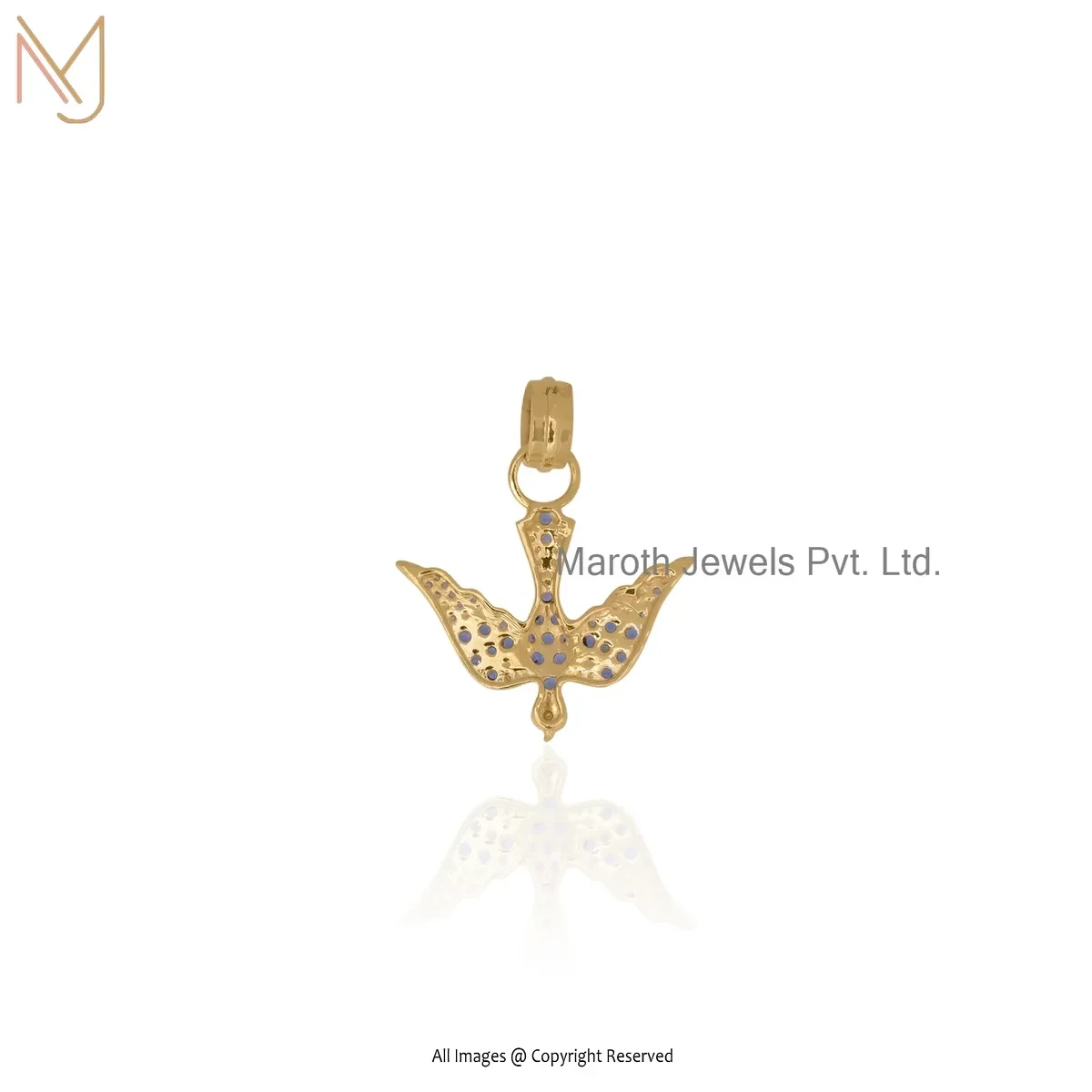 925 Silver Yellow Gold Plated Diamond Blue Sapphire Bird Pendant Manufacturer