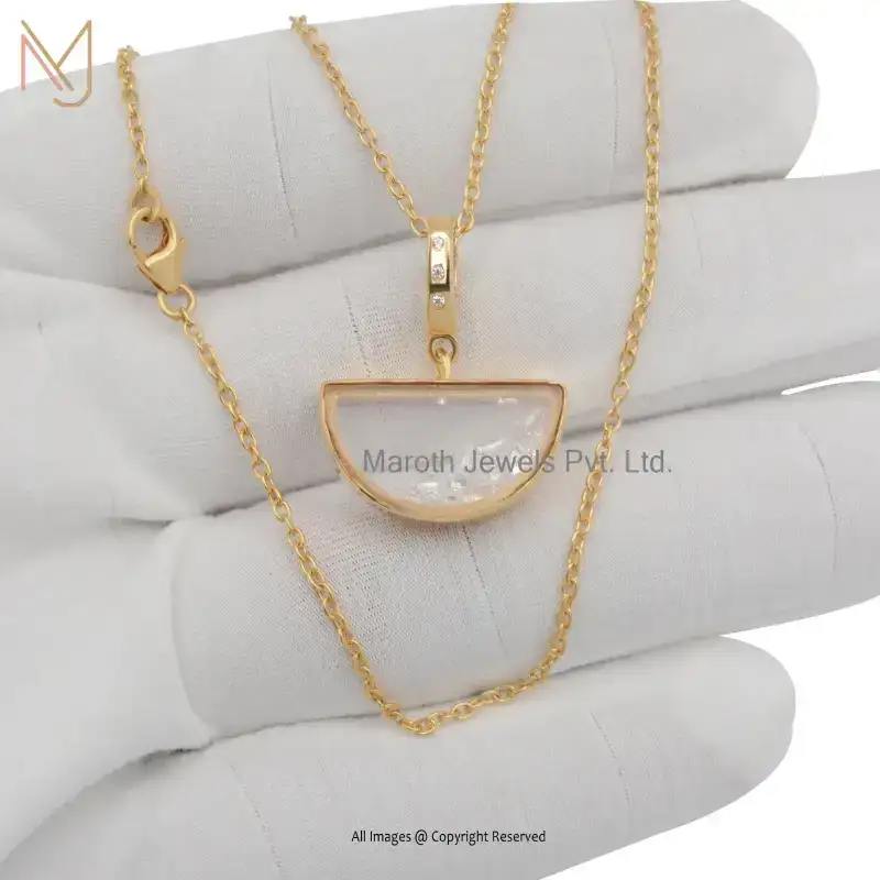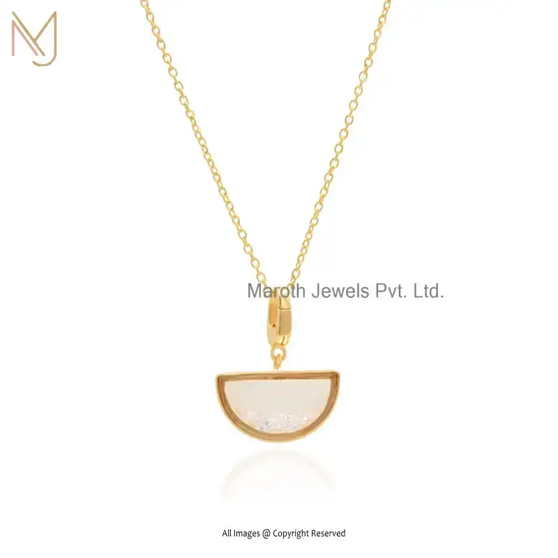 925 Silver Yellow Gold Plated Diamond Crystal Quartz Half Moon Locket Pendant Jewelry Supplier