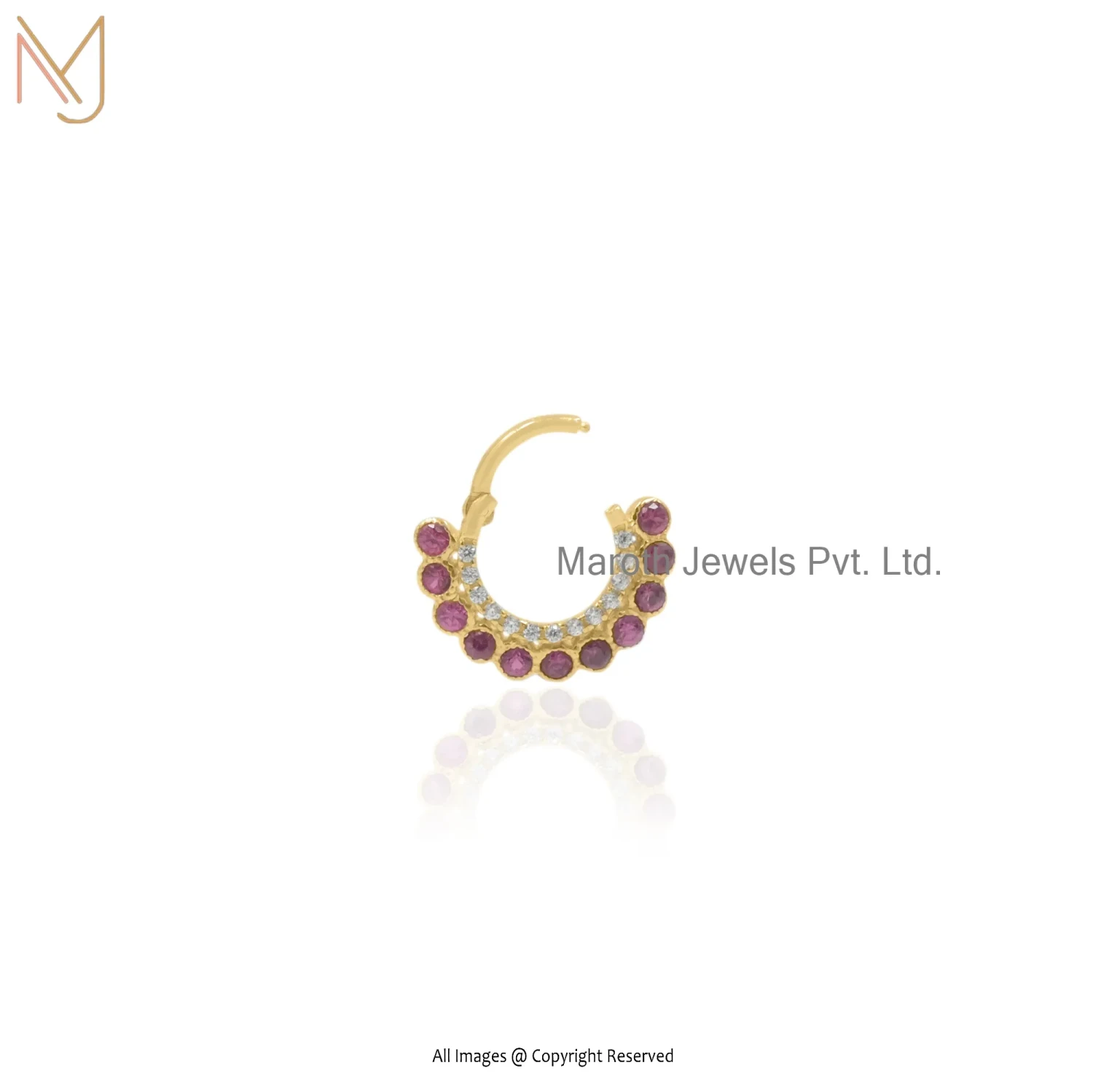 925 Silver Yellow Gold Plated Diamond CZ Ruby Piercing Jewelry Manufacturer