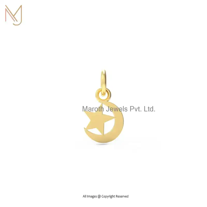 925 Silver Yellow Gold Plated Diamond Half Moon Star Design Pendant Jewelry USA