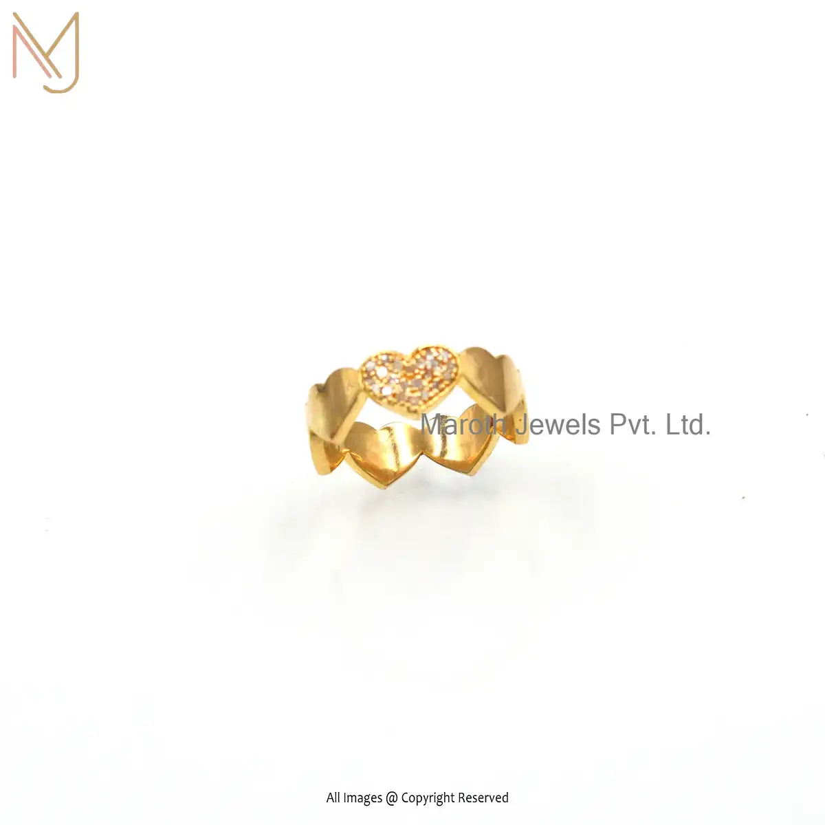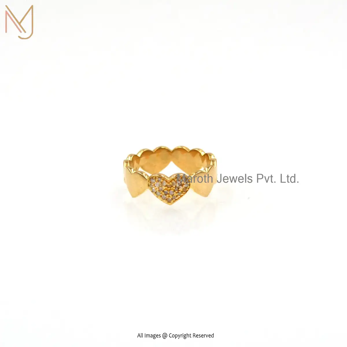 925 Silver Yellow Gold Plated Diamond Hearts Ring Jewelry Manufacturer