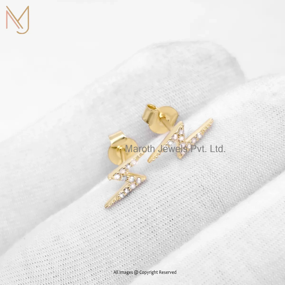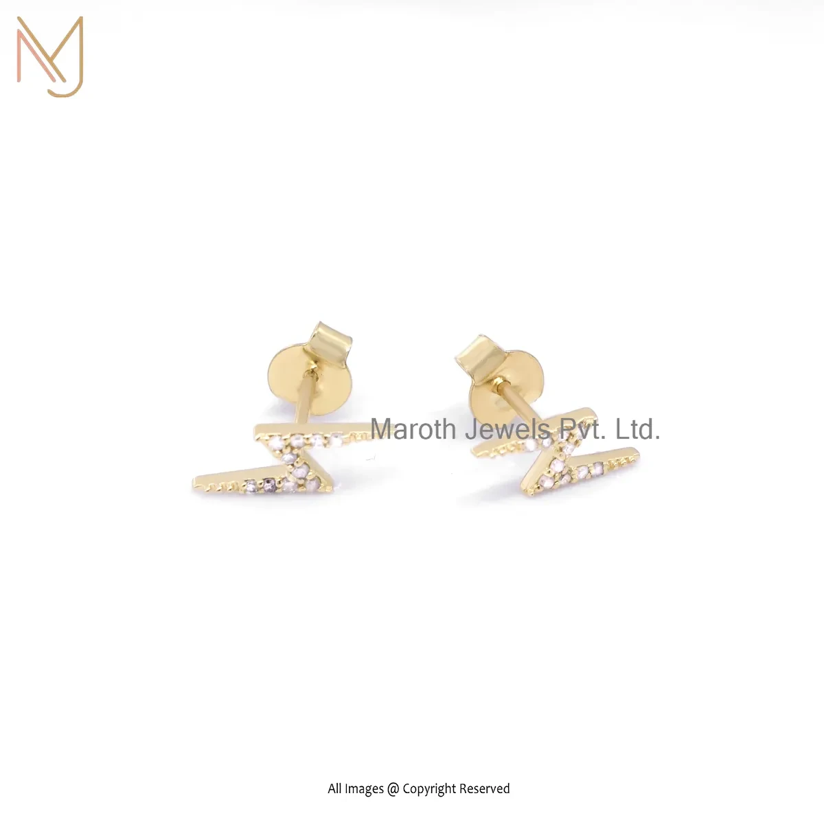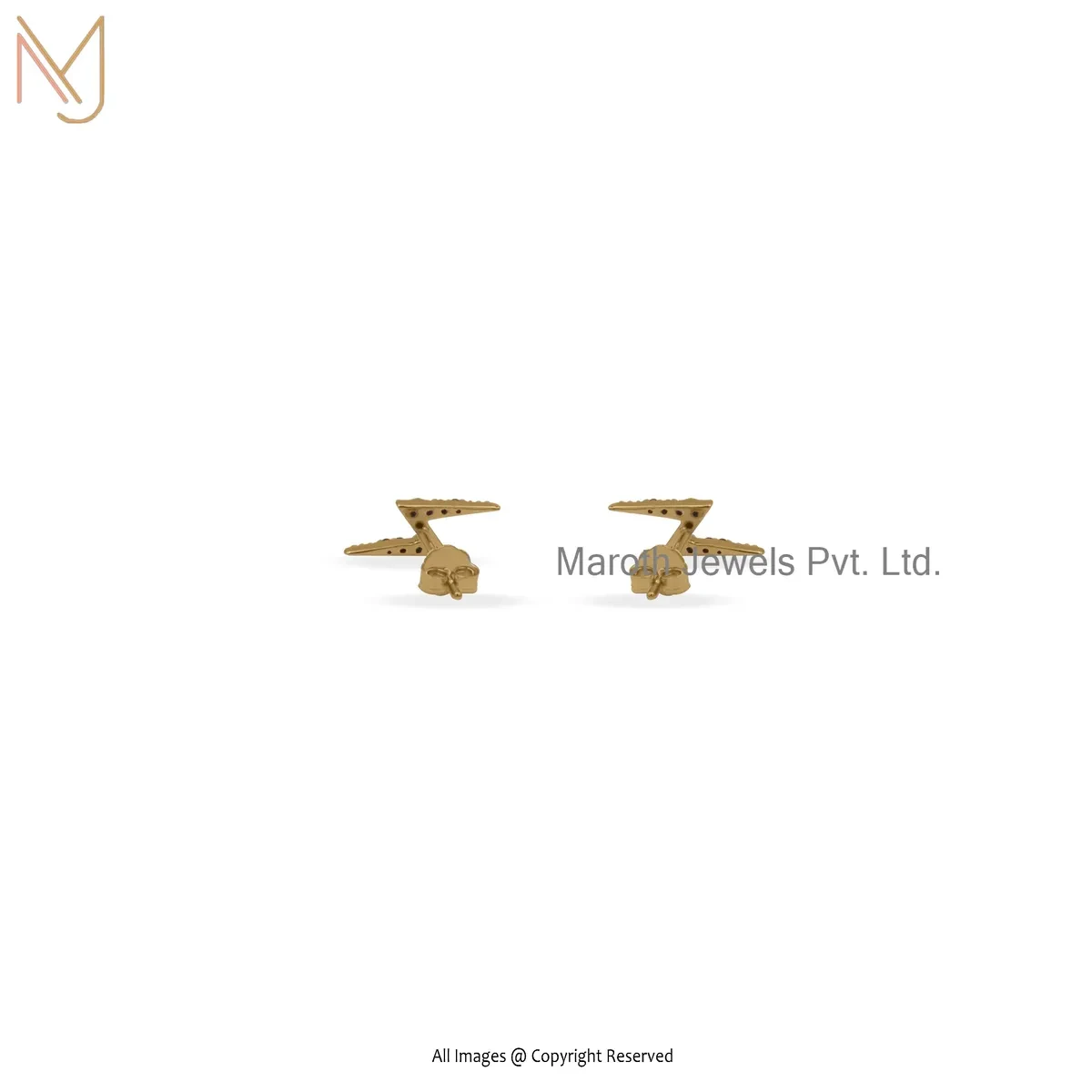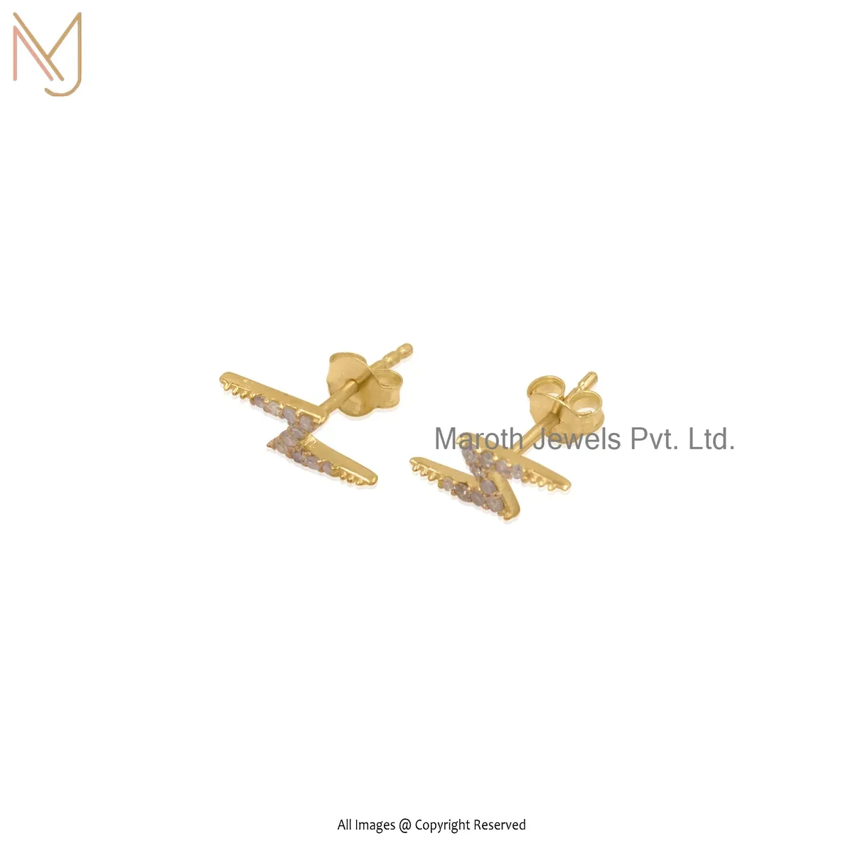 925 Silver Yellow Gold Plated Diamond Lightning Bolt Stud Earrings Custom Jewelry