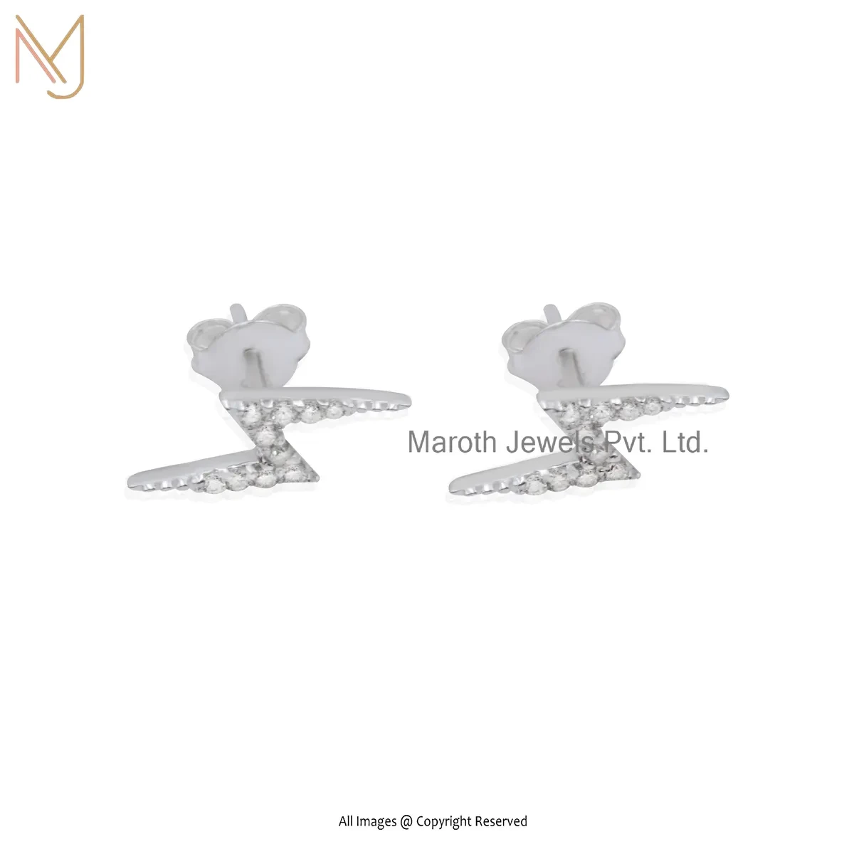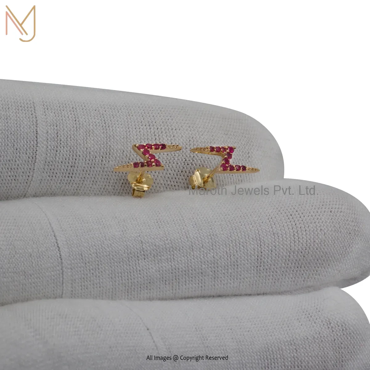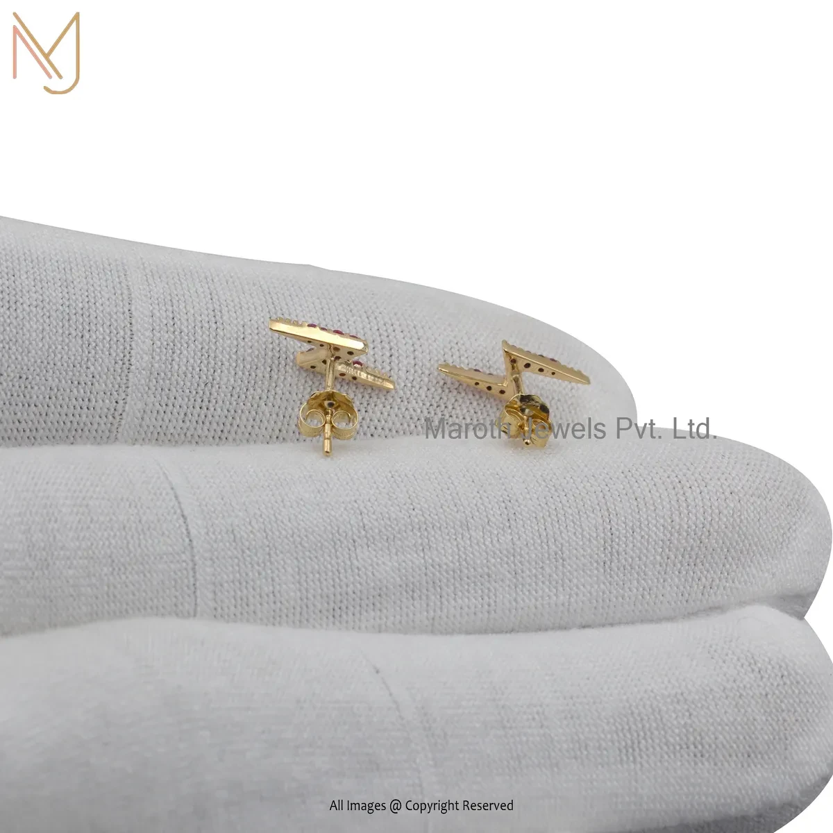 925 Silver Yellow Gold Plated Diamond Lightning Bolt Stud Earrings Custom Jewelry