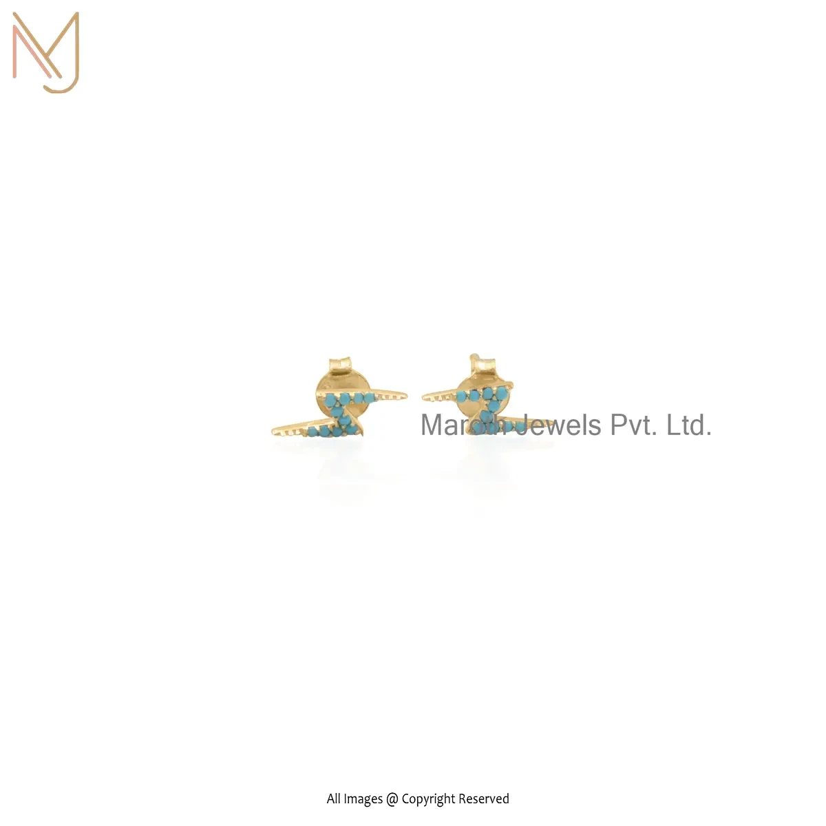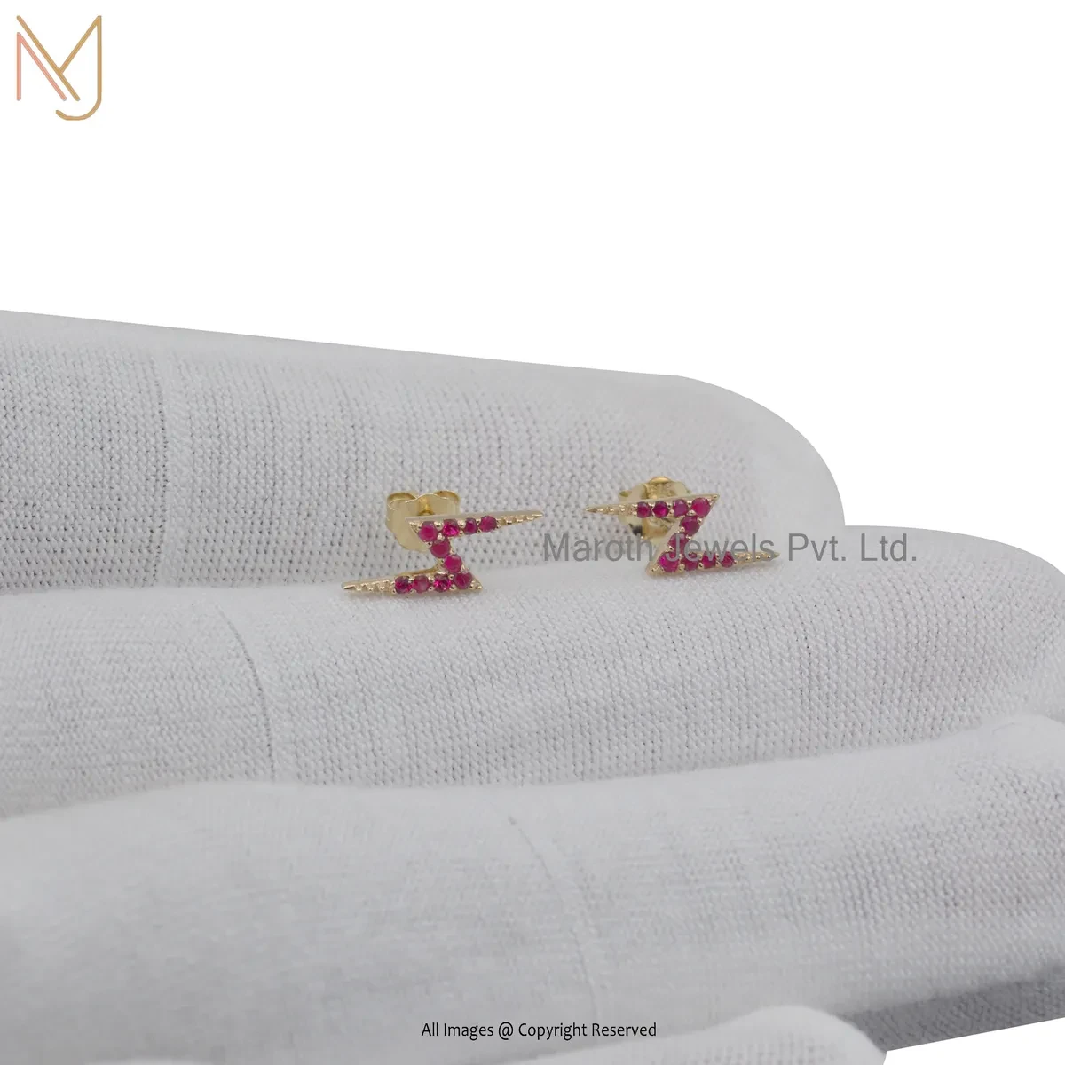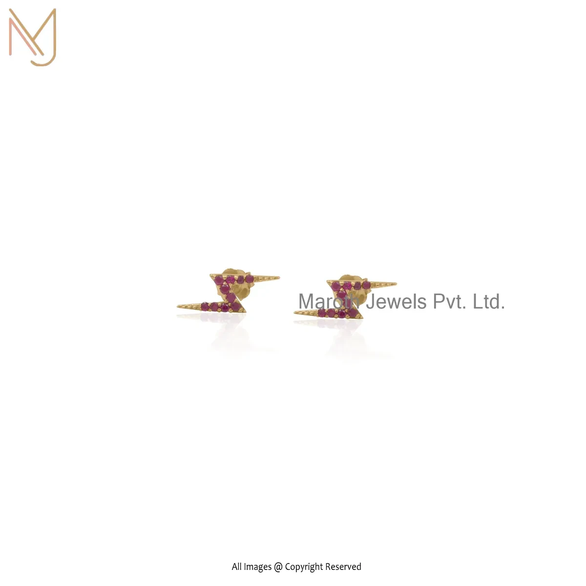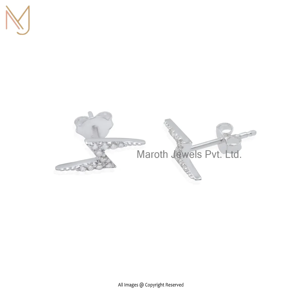 925 Silver Yellow Gold Plated Diamond Lightning Bolt Stud Earrings Custom Jewelry