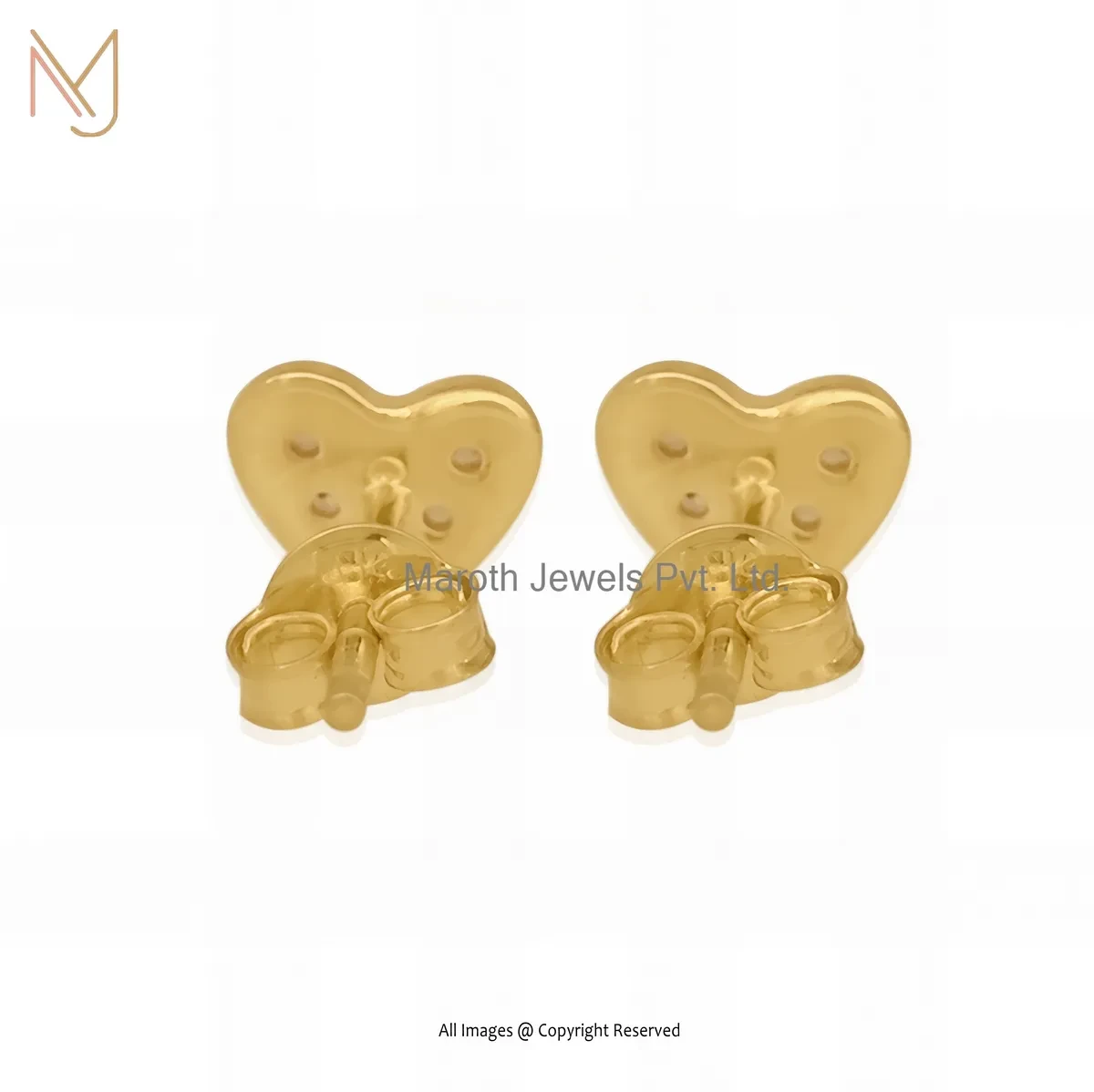 925 Silver Yellow Gold Plated Diamond Pink Sapphire Heart Studs Earring USA
