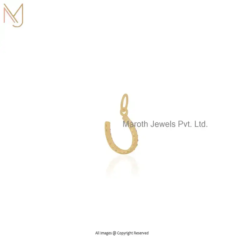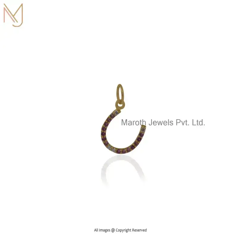 925 Silver Yellow Gold Plated Diamond Pink Sapphire Horseshoe Charm Pendant Manufacturer