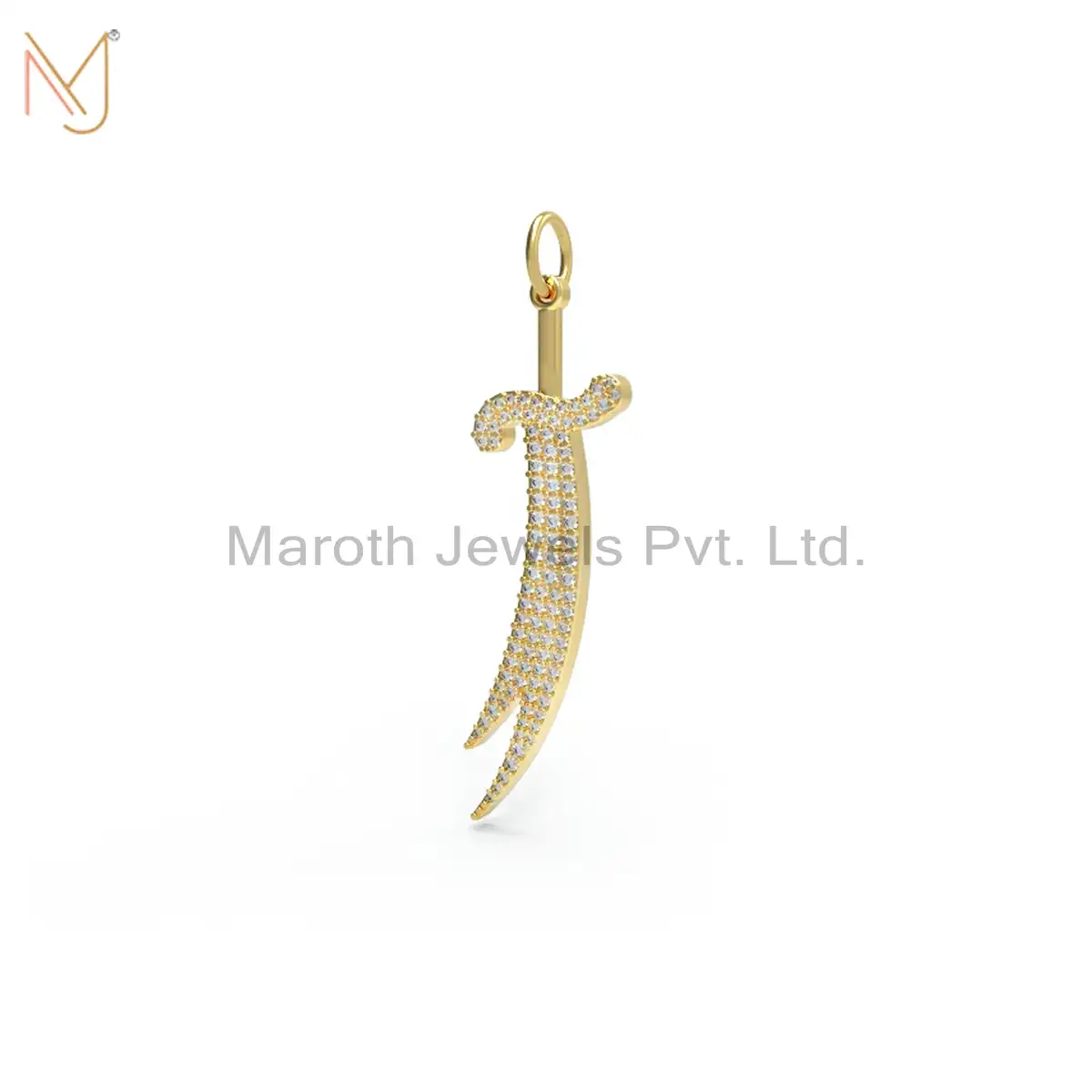 925 Silver Yellow Gold Plated Diamond Sword Pendant Custom Jewelry