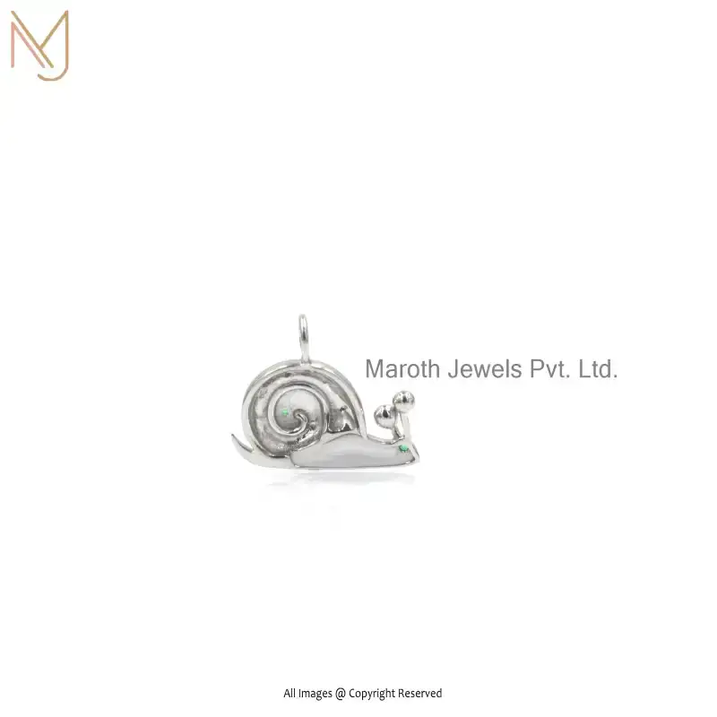 925 Silver Yellow Gold Plated Emerald Gemstone Snail Pendant Custom Jewelry