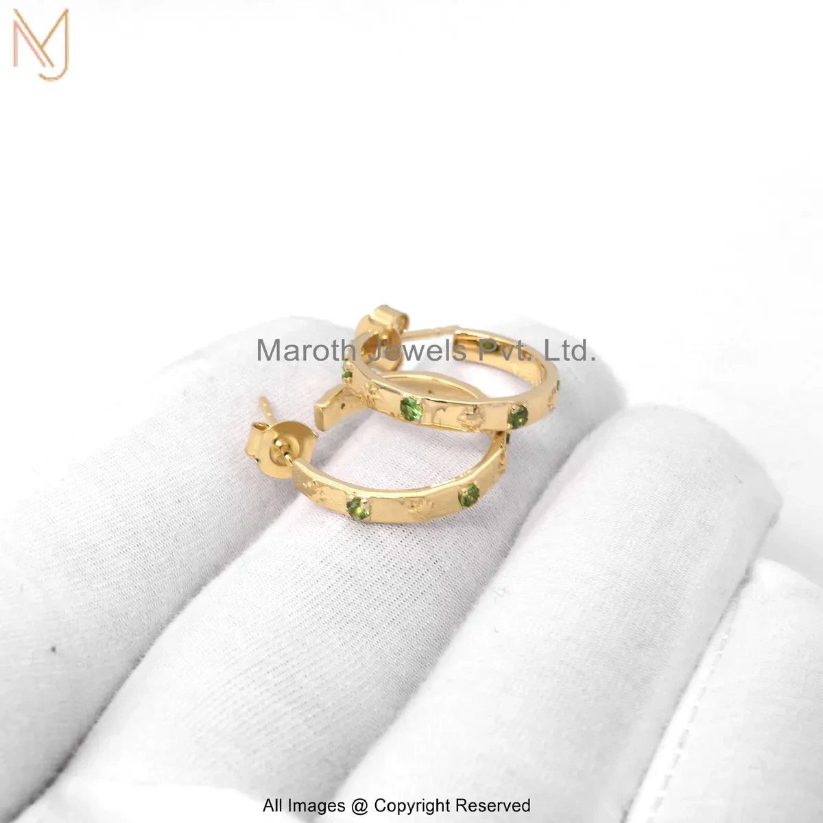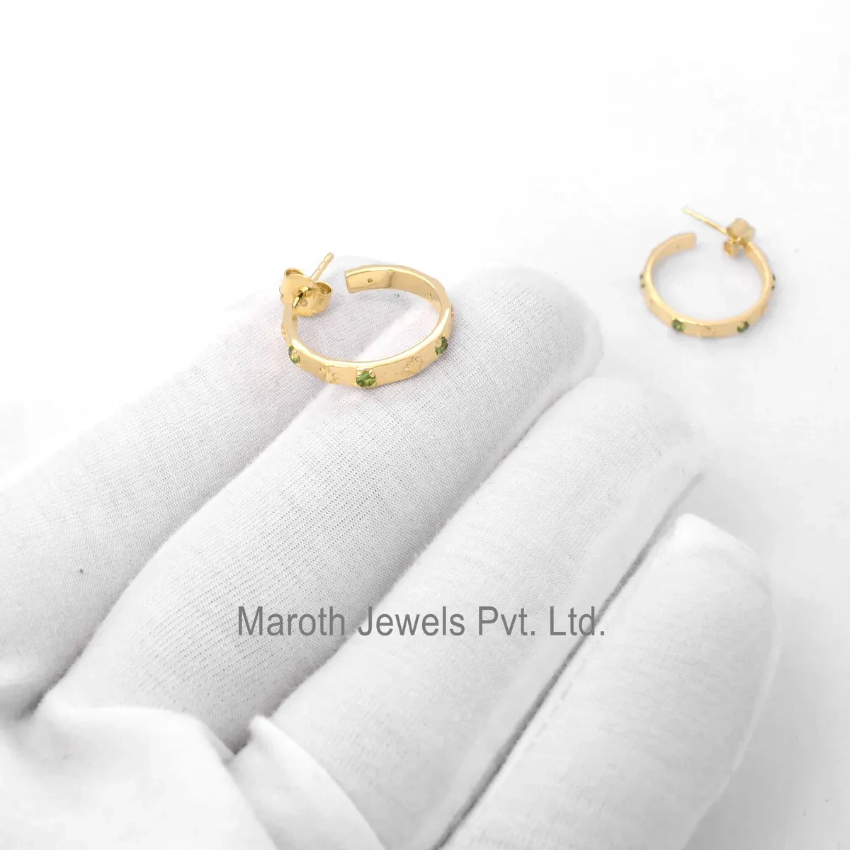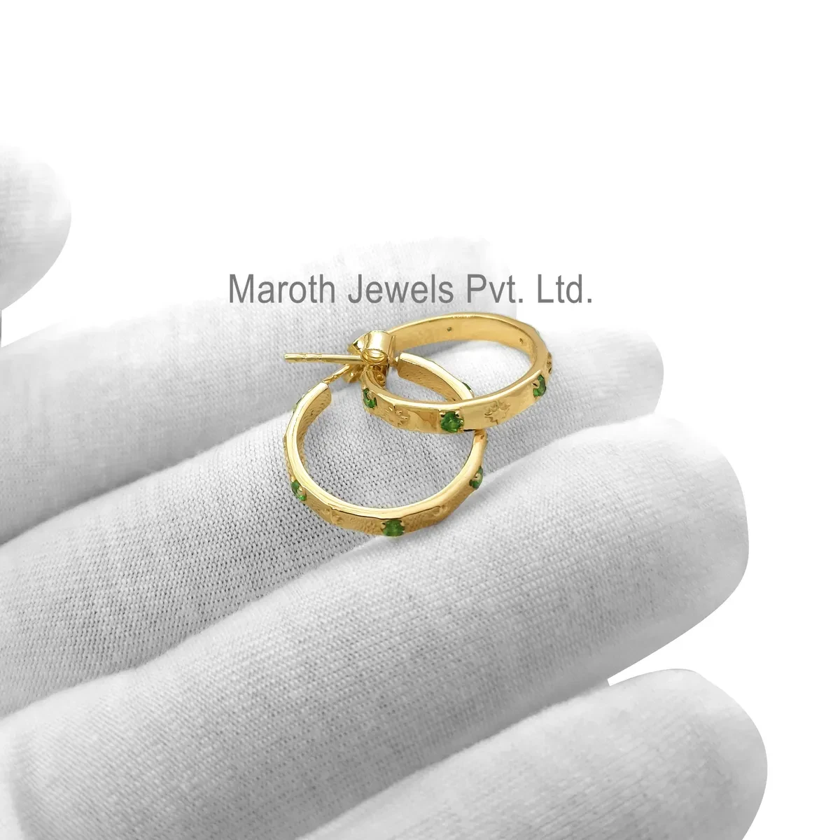 925 Silver Yellow Gold Plated Emerald Hoop Huggie Earring Custom Jewelry
