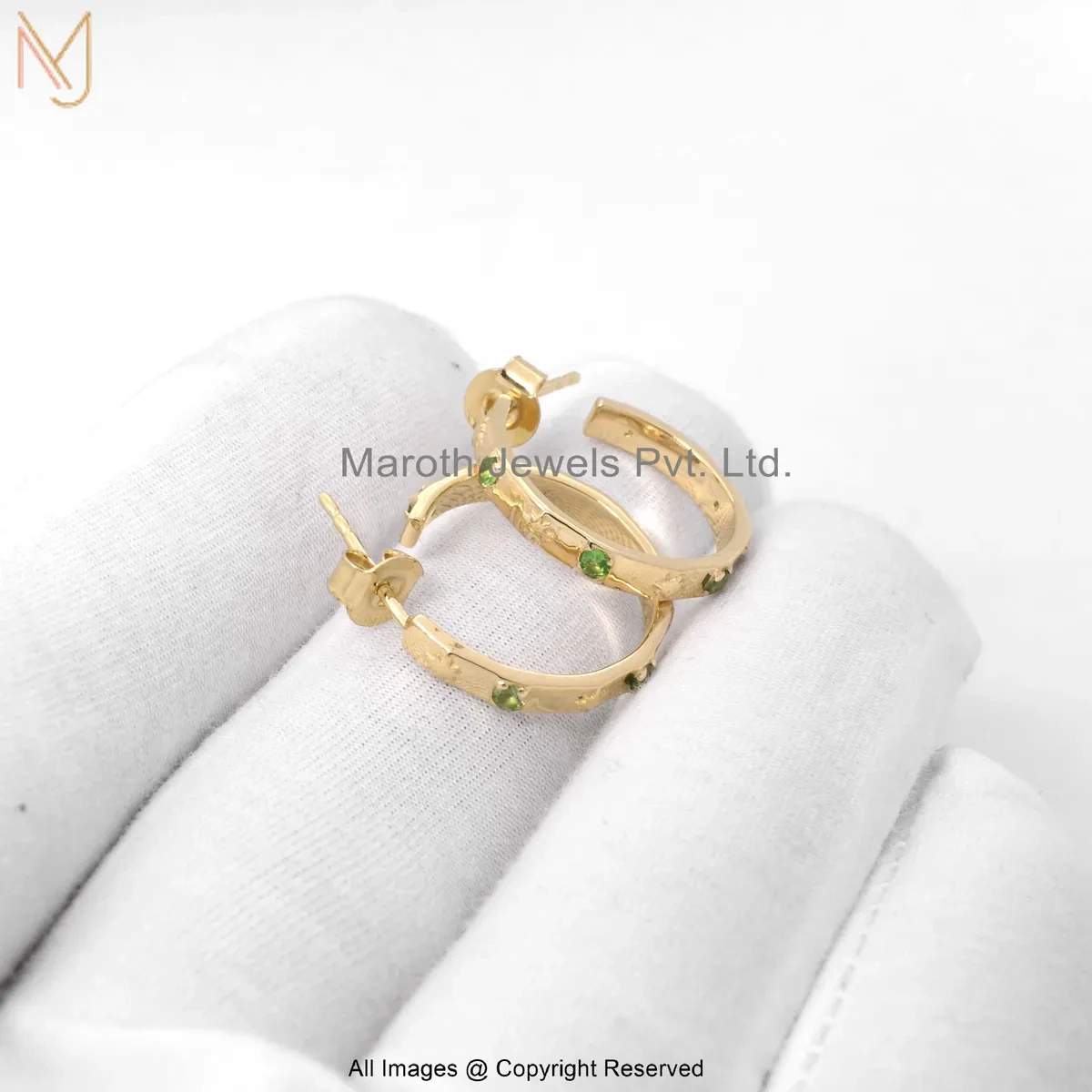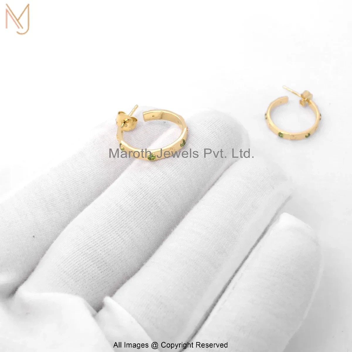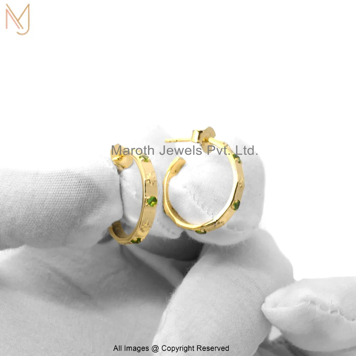 925 Silver Yellow Gold Plated Emerald Hoop Huggie Earring Custom Jewelry