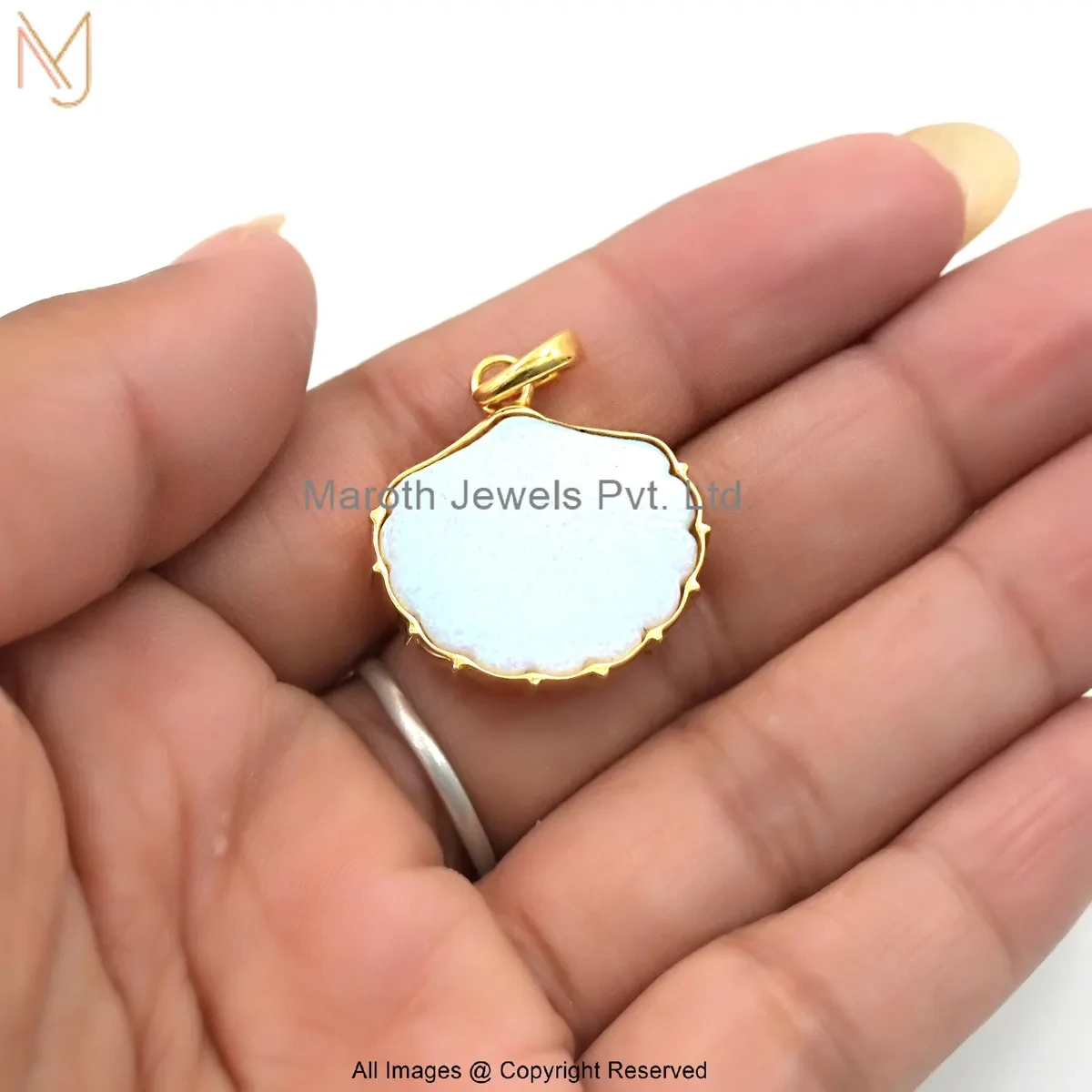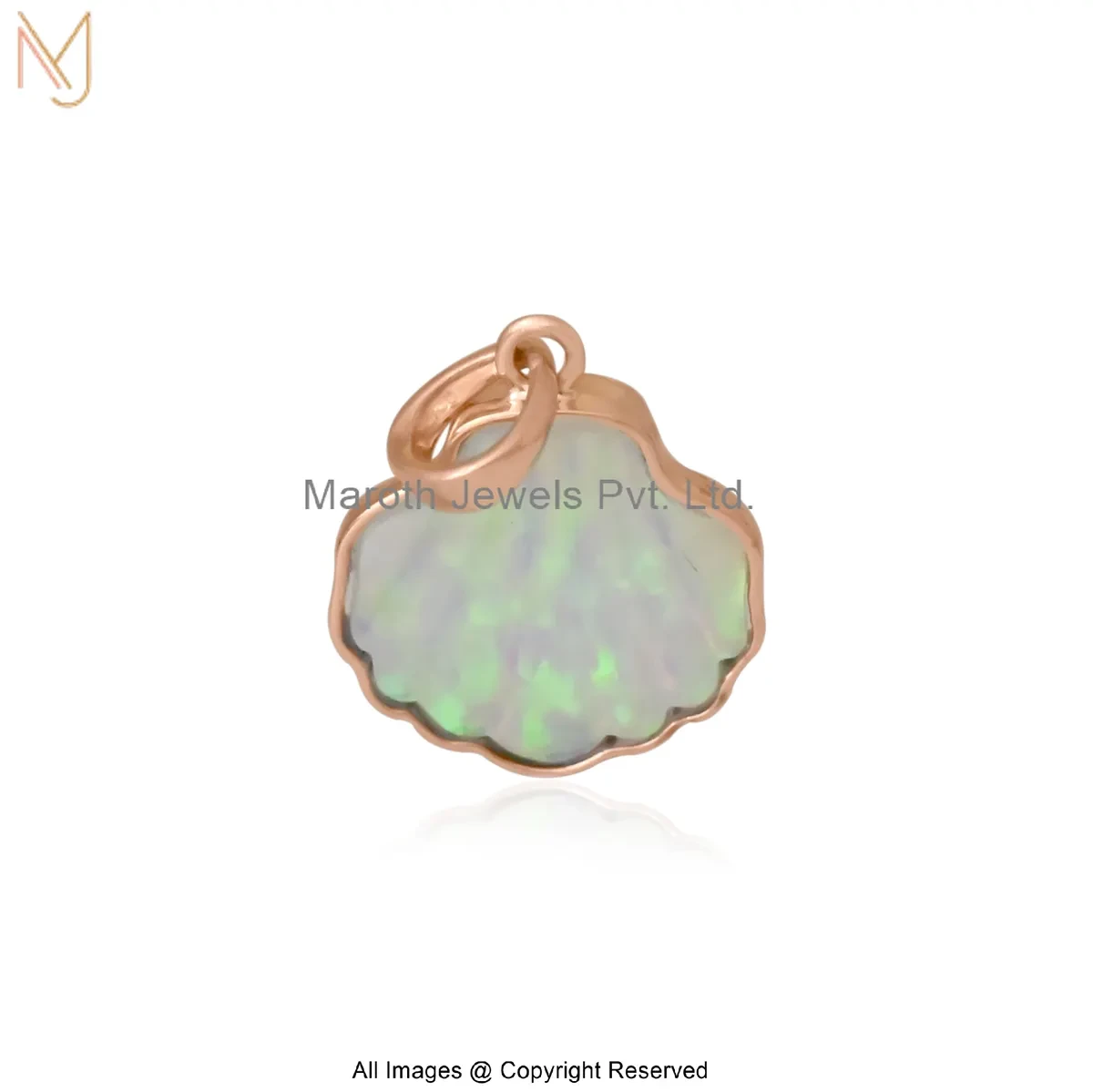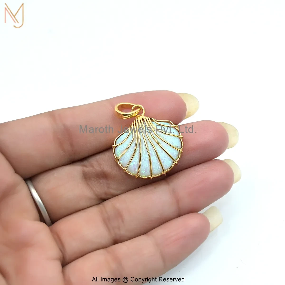 925 Silver Yellow Gold Plated Ethiopian Opal Seashell Charm Pendant Custom Jewelry