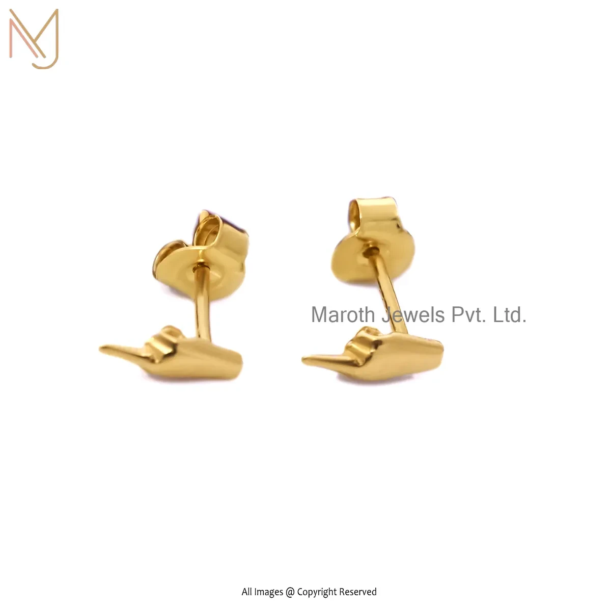 925 Silver Yellow Gold Plated Finger Hand Stud Earring Custom Jewelry