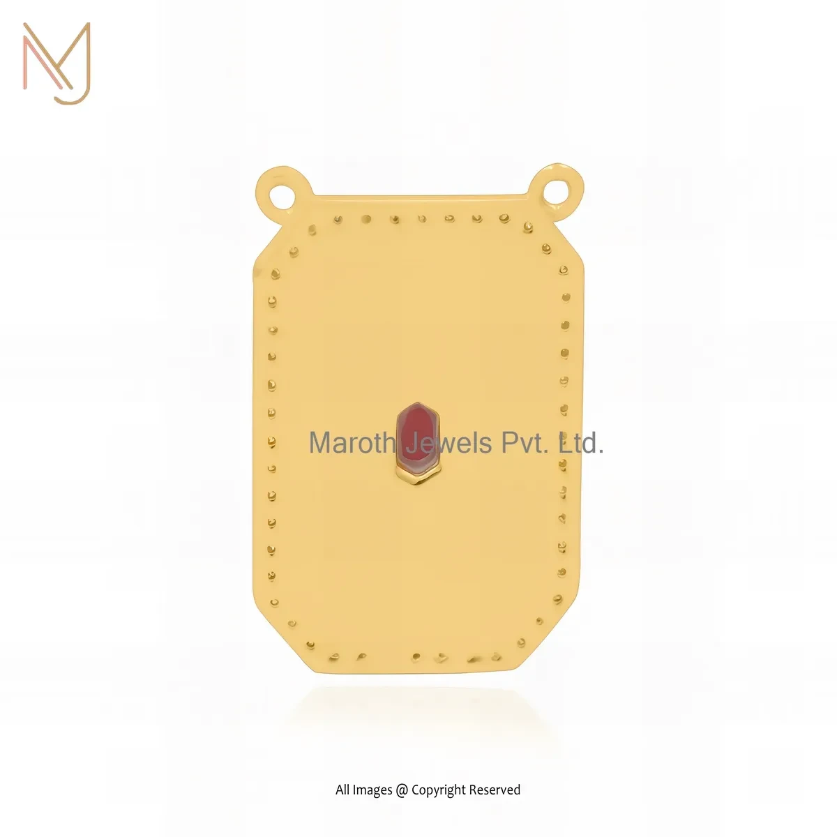 925 Silver Yellow Gold Plated Garnet And Moissanite Sacred Scapular Pendant USA