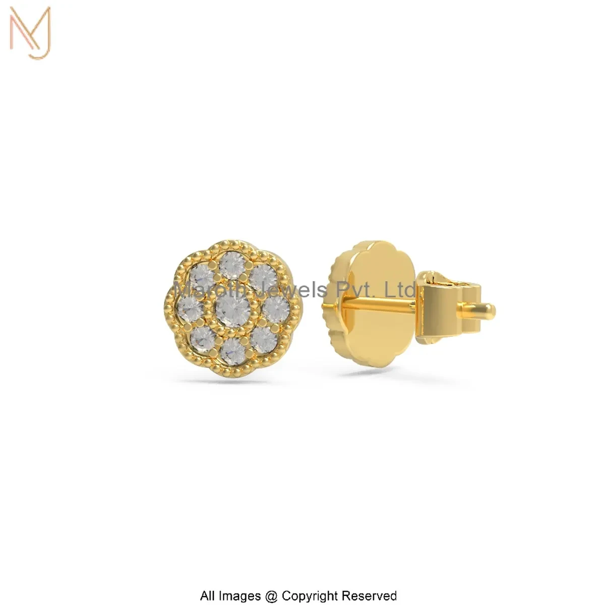 925 Silver Yellow Gold Plated Gemstone Diamond Floral Cluster Stud Earrings Jewelry Supplier