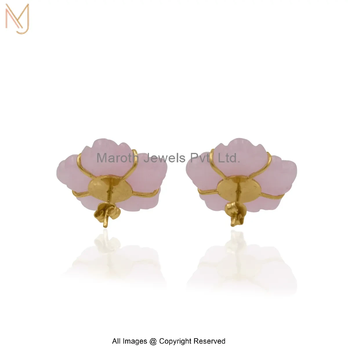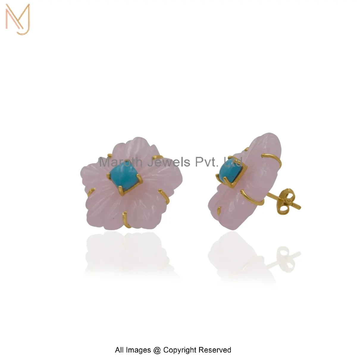 925 Silver Yellow Gold Plated Gemstone Flower Stud Earring Custom Jewelry