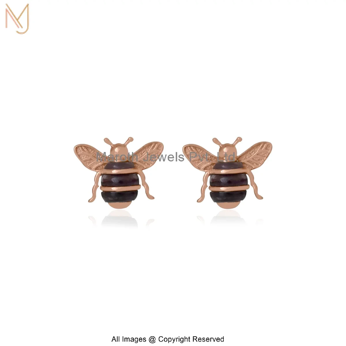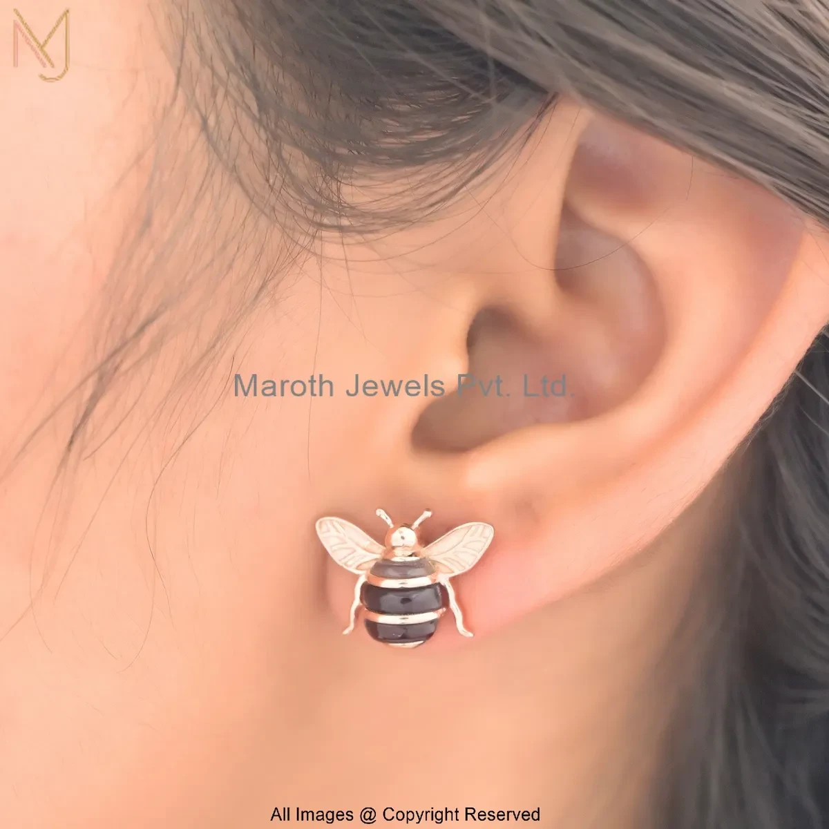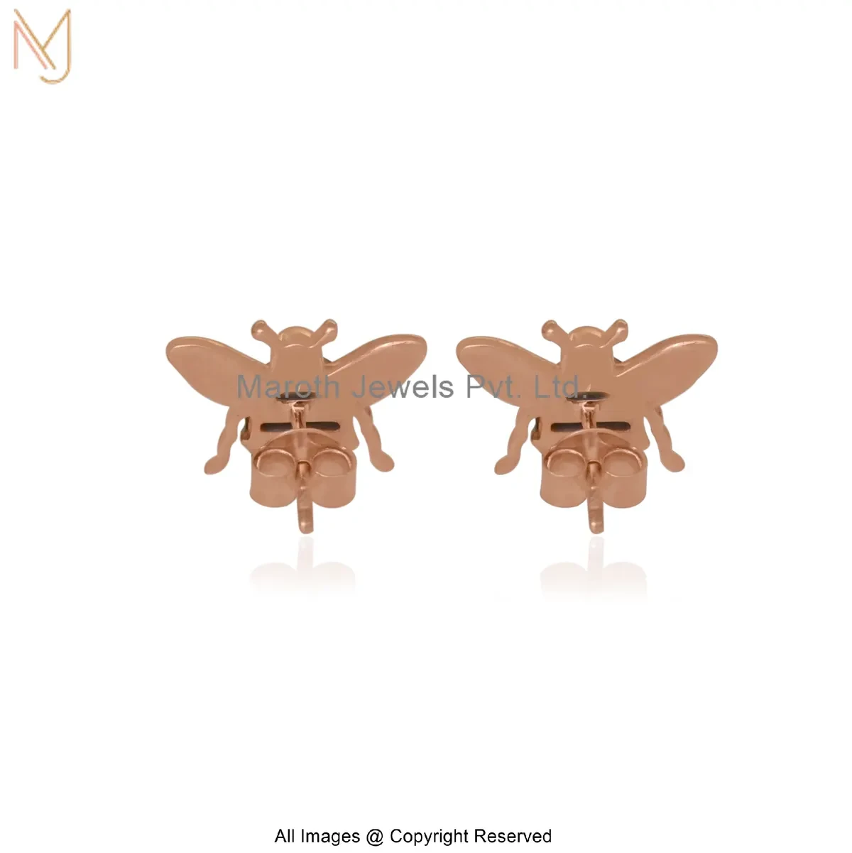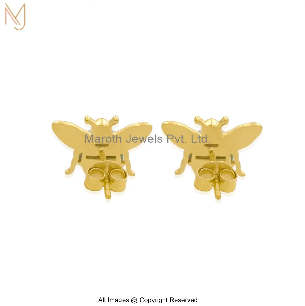 925 Silver Yellow Gold Plated Gemstone Honey Bee Stud Earring Custom Jewelry