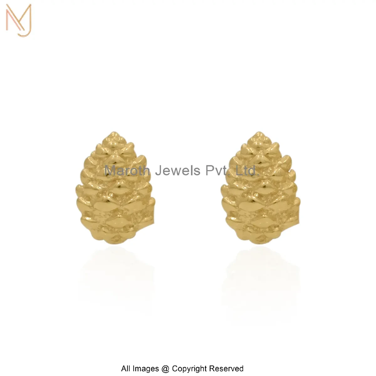 925 Silver Yellow Gold Plated Gold Pinecone Stud Earrings Jewelry Supplier