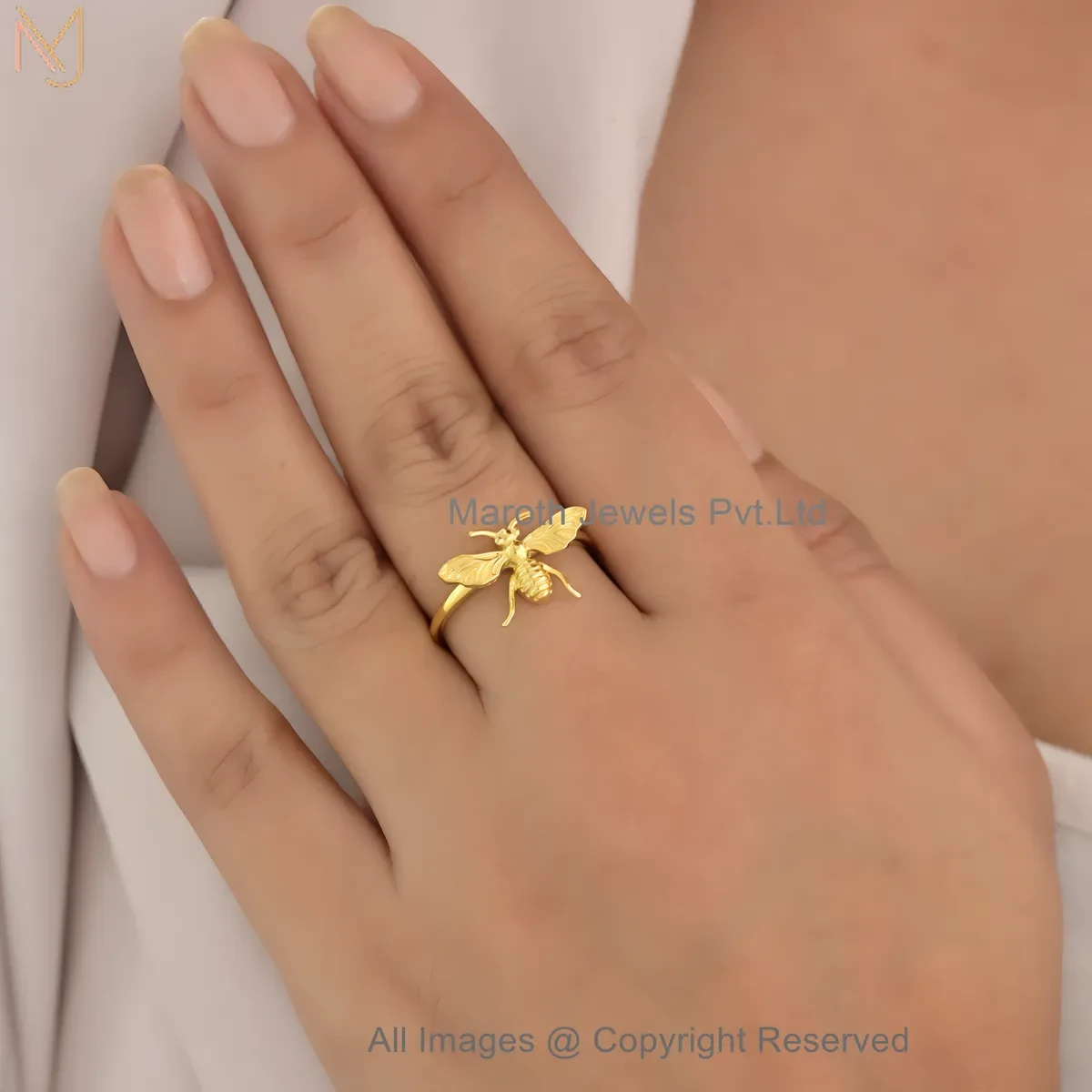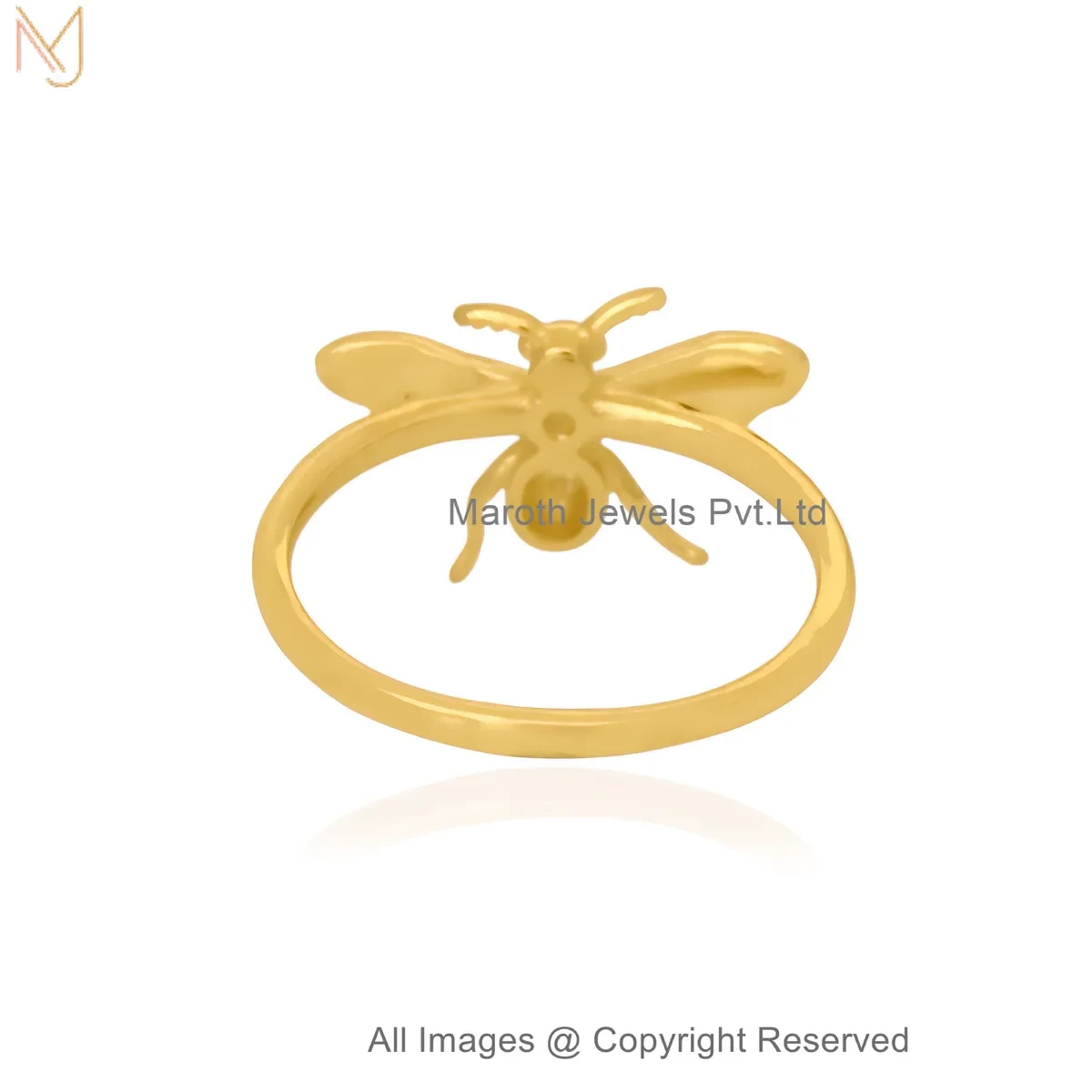 925 Silver Yellow Gold Plated Gold-Toned Honey Bee Ring Custom Jewelry