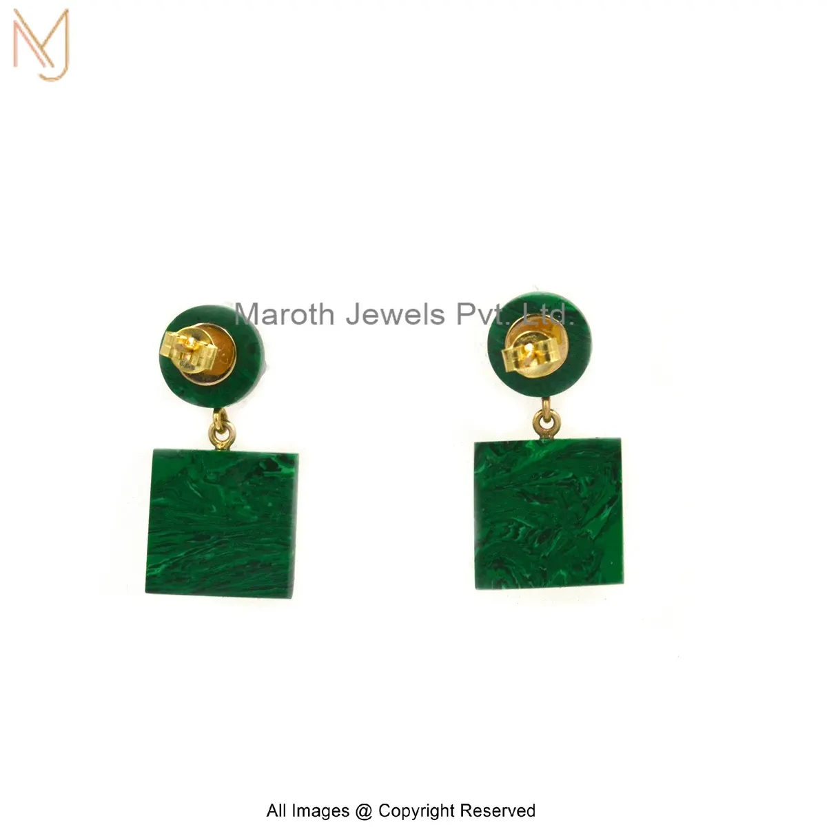 925 Silver Yellow Gold Plated Green Cubic Zircon Malachite Gemstone Square Drop Earrings USA