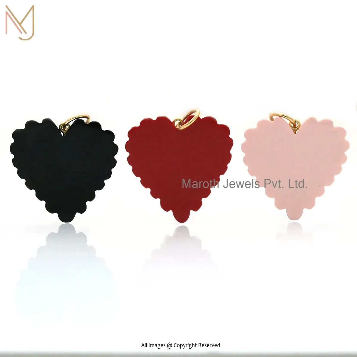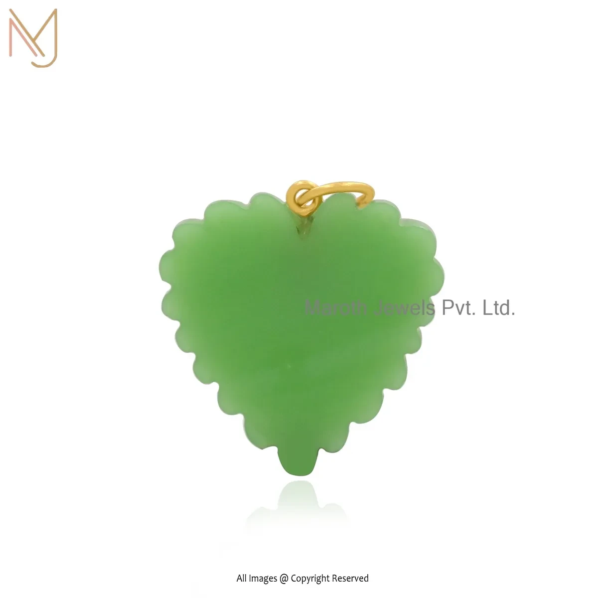 925 Silver Yellow Gold Plated Green Opal Heart Pendant Custom Jewelry