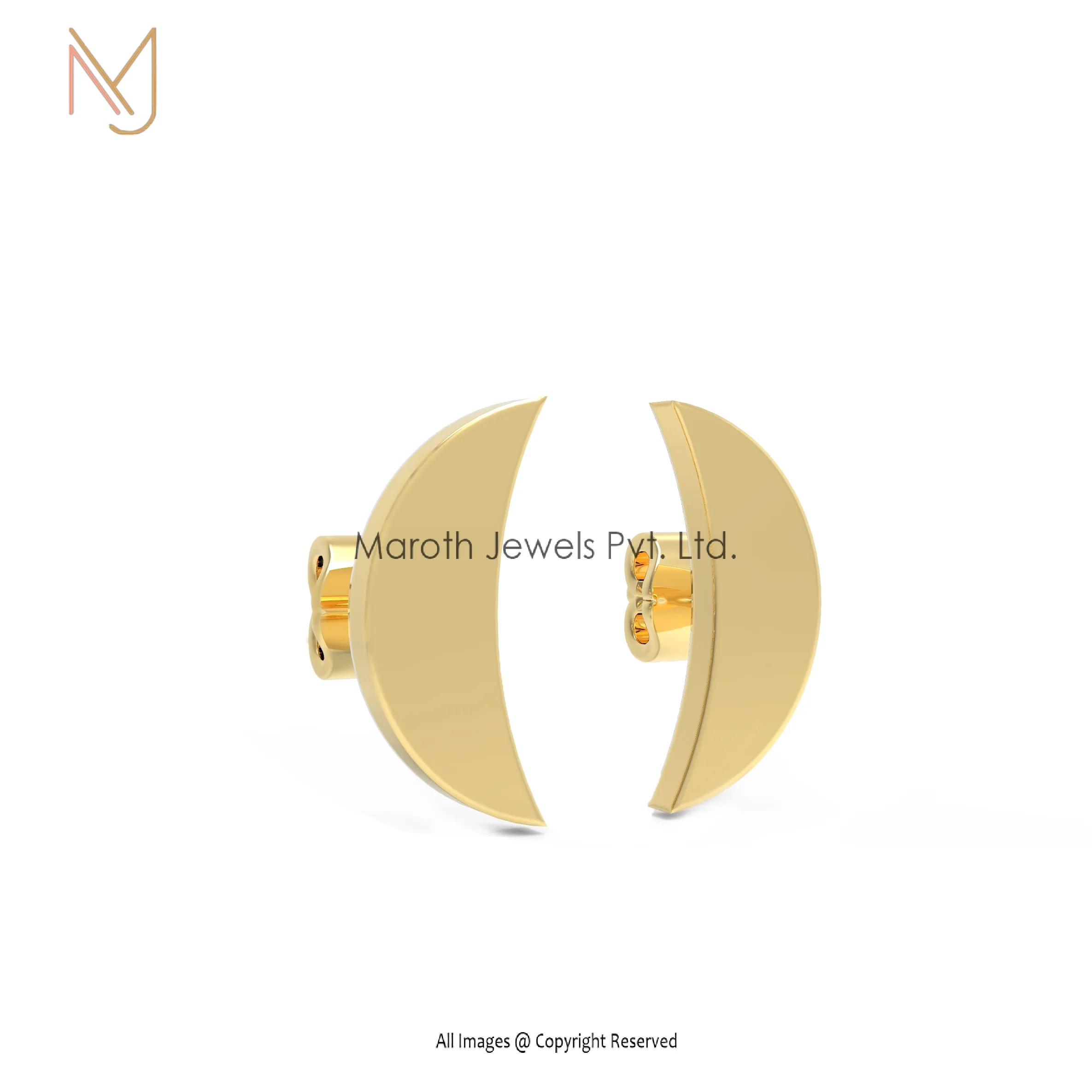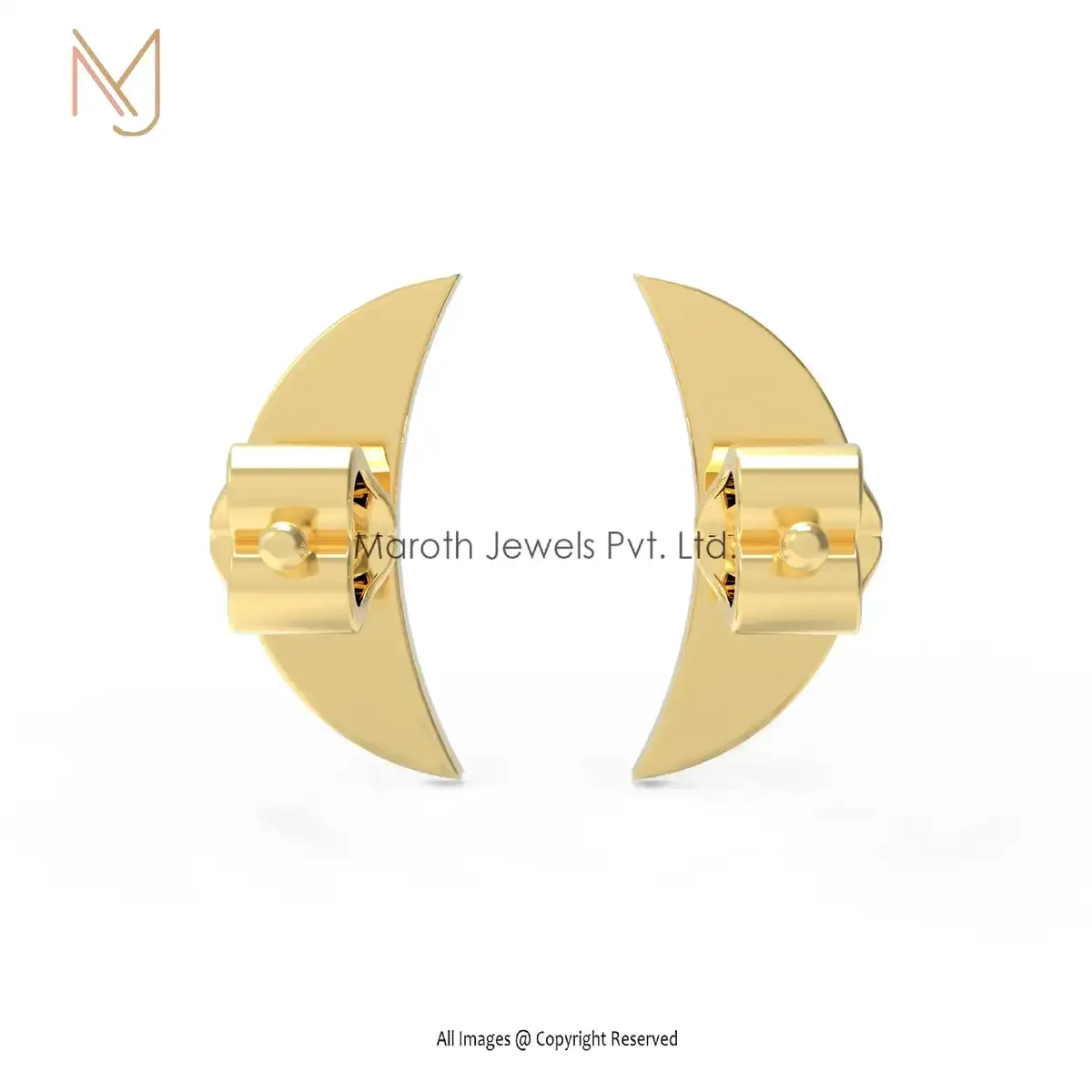 925 Silver Yellow Gold Plated Half Moon Desing Stud Earring Custom Jewelry