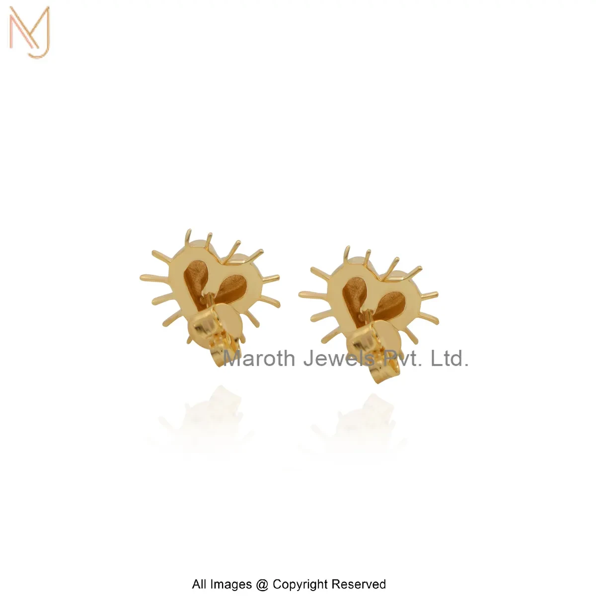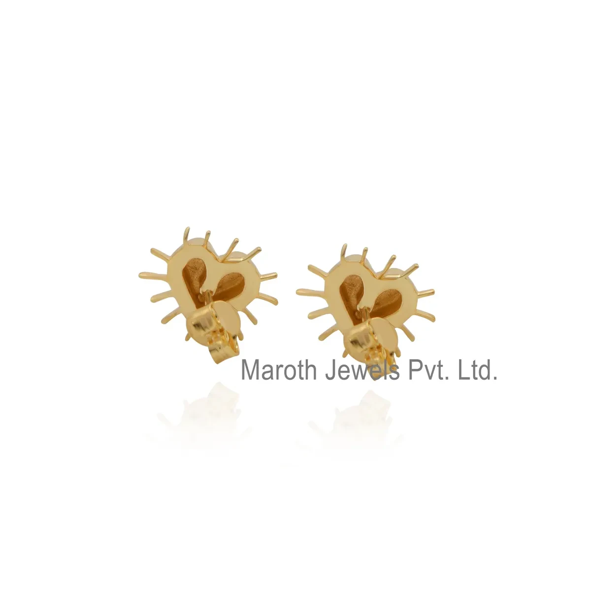 925 Silver Yellow Gold Plated Heart Design Stud Earring Jewelry Supplier