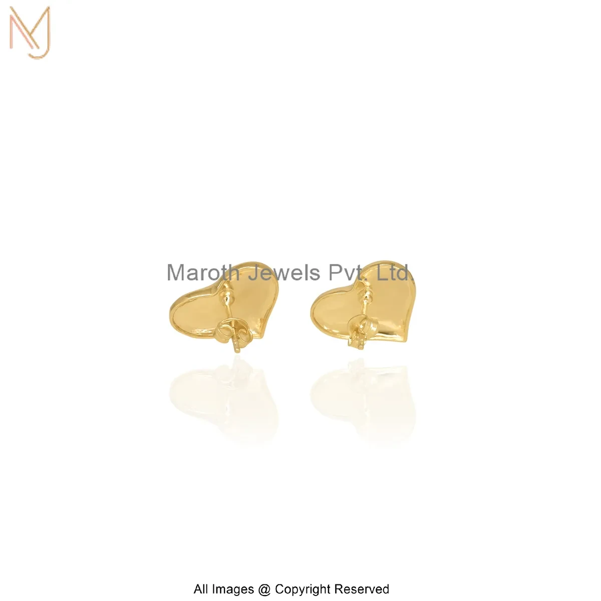 925 Silver Yellow Gold Plated Heart Stud Earring Custom Jewelry