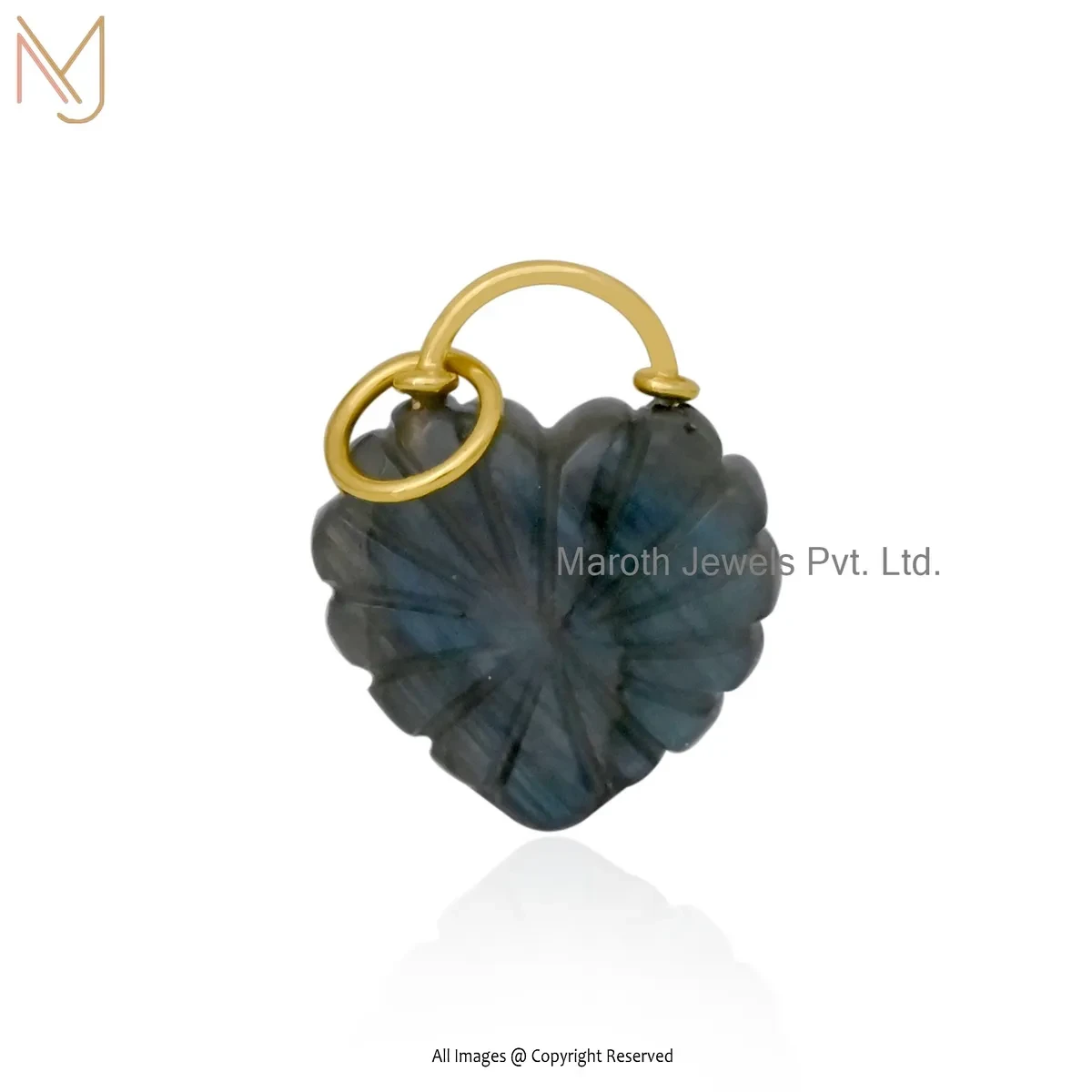 925 Silver Yellow Gold Plated Labradorite And Cubic Zircon Heart Pendant Jewelry USA