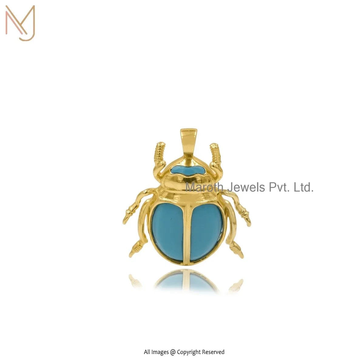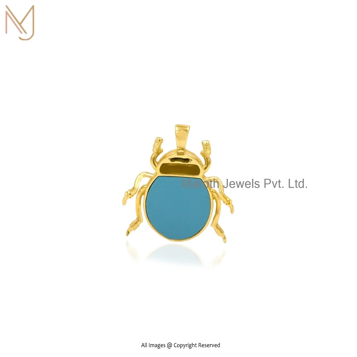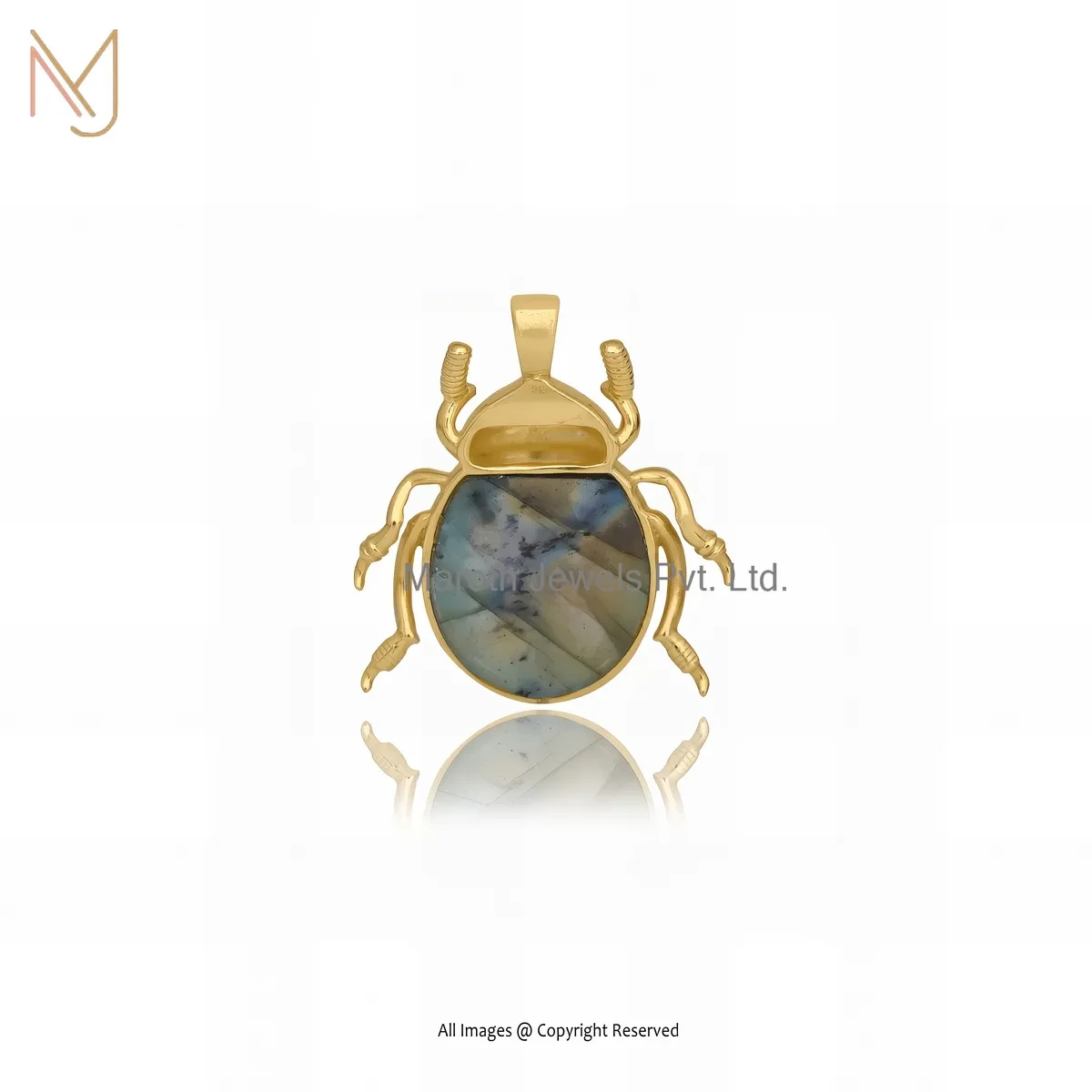 925 Silver Yellow Gold Plated Labradorite Gemstone Scarab Pendant Custom Jewelry