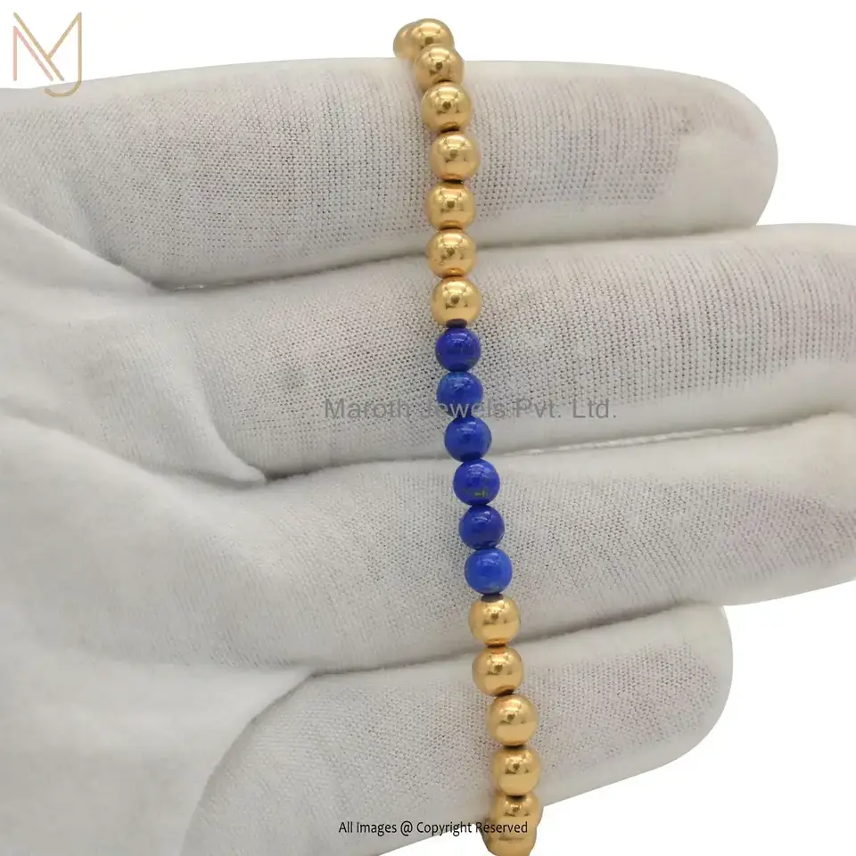 925 Silver Yellow Gold Plated & Lapis Lazuli Beads Bracelet Jewelry USA