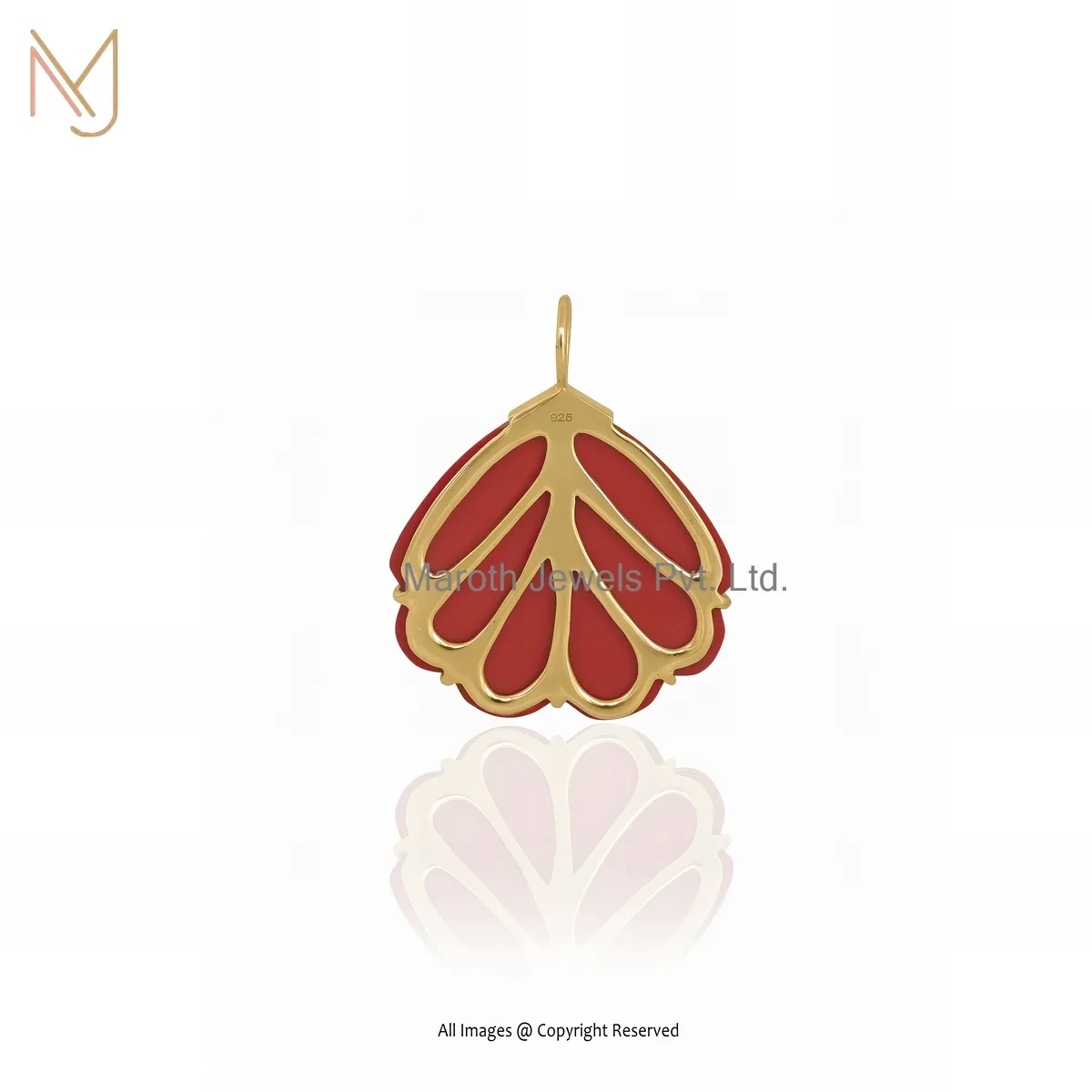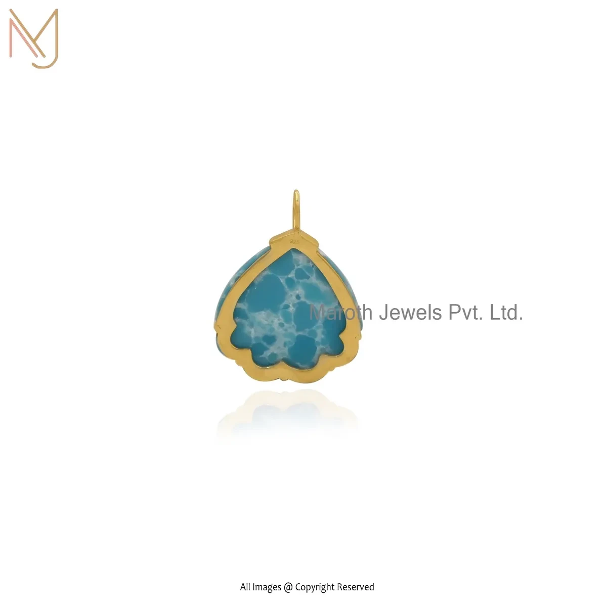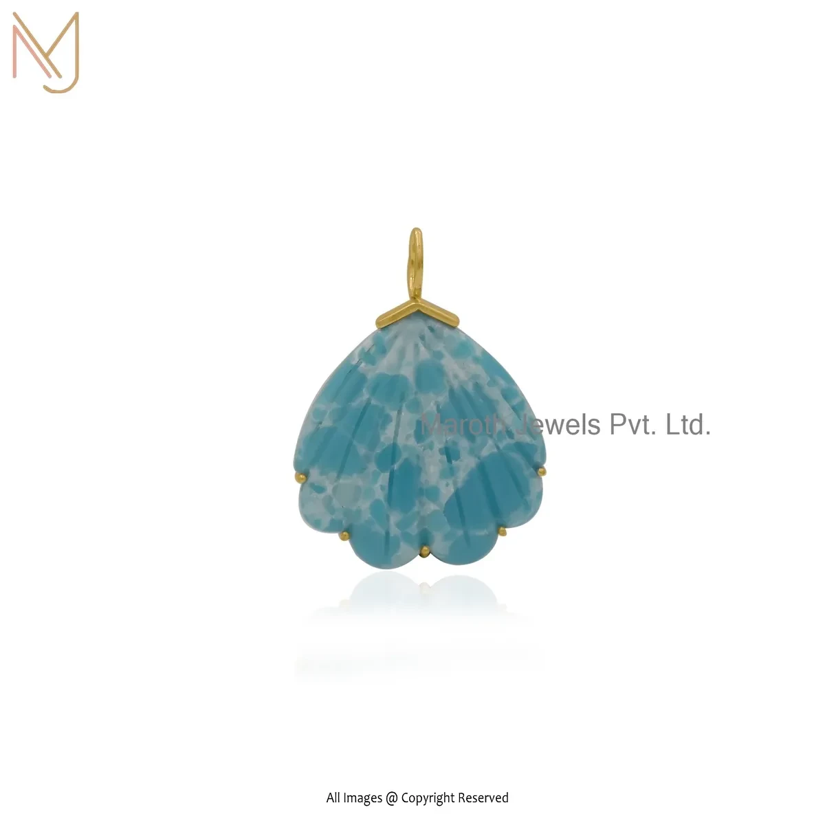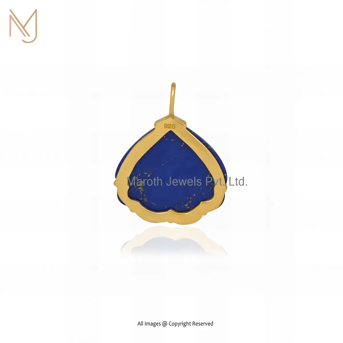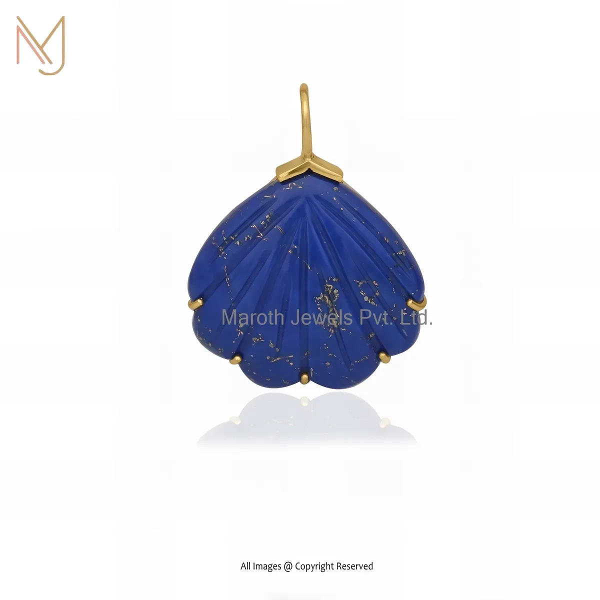 925 Silver Yellow Gold Plated Lapiz Lazuli Gemstone Shell Pendant Manufacturer