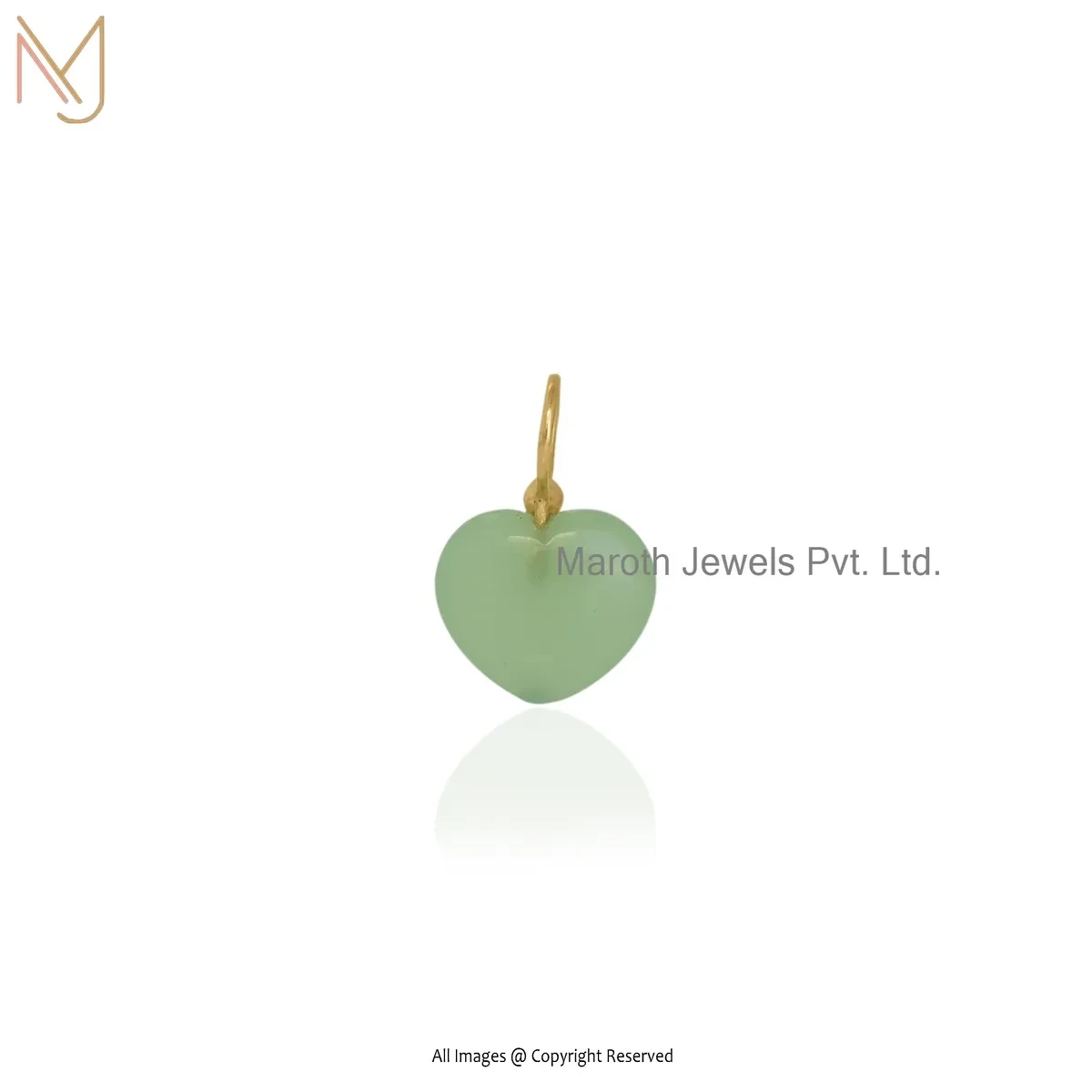925 Silver Yellow Gold Plated Light Green Quartz & Green Opal Gemstone Heart Pendant USA