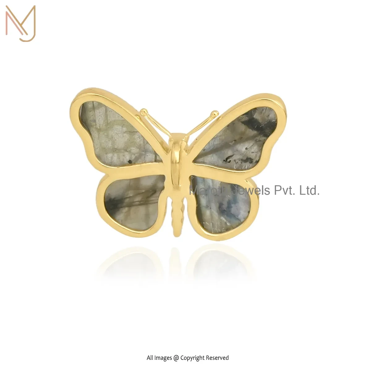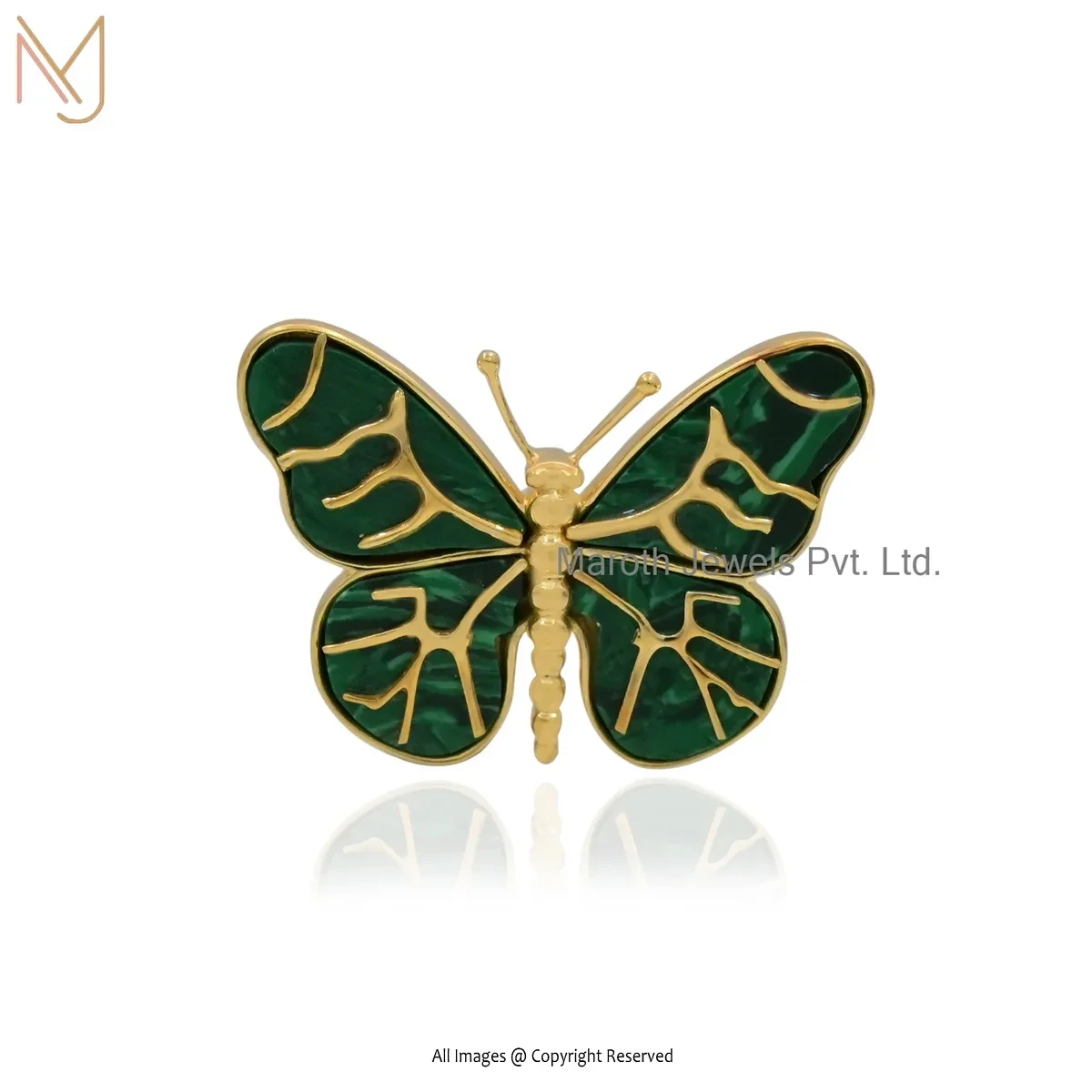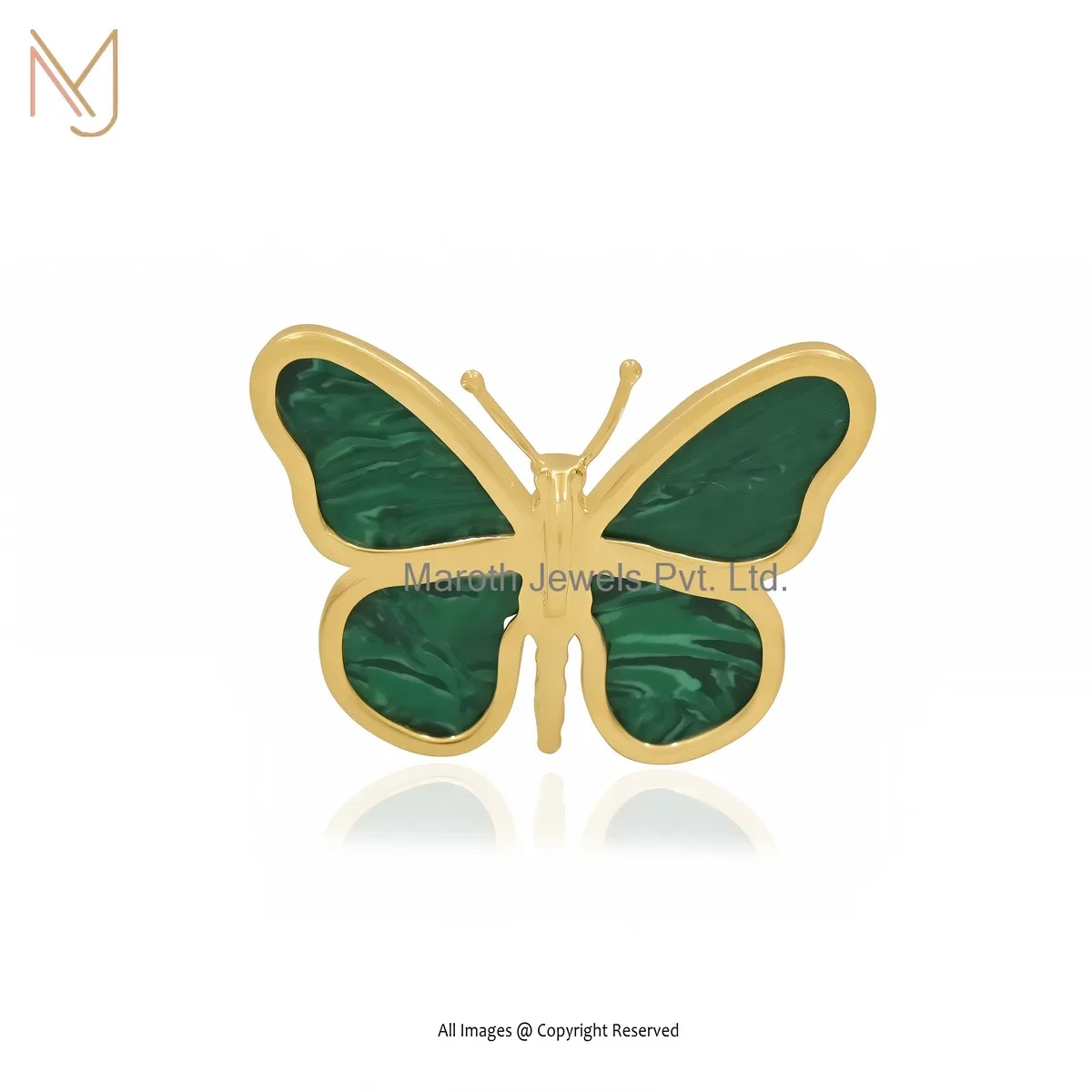 925 Silver Yellow Gold Plated Malachite Butterfly Pendant Custom Jewelry