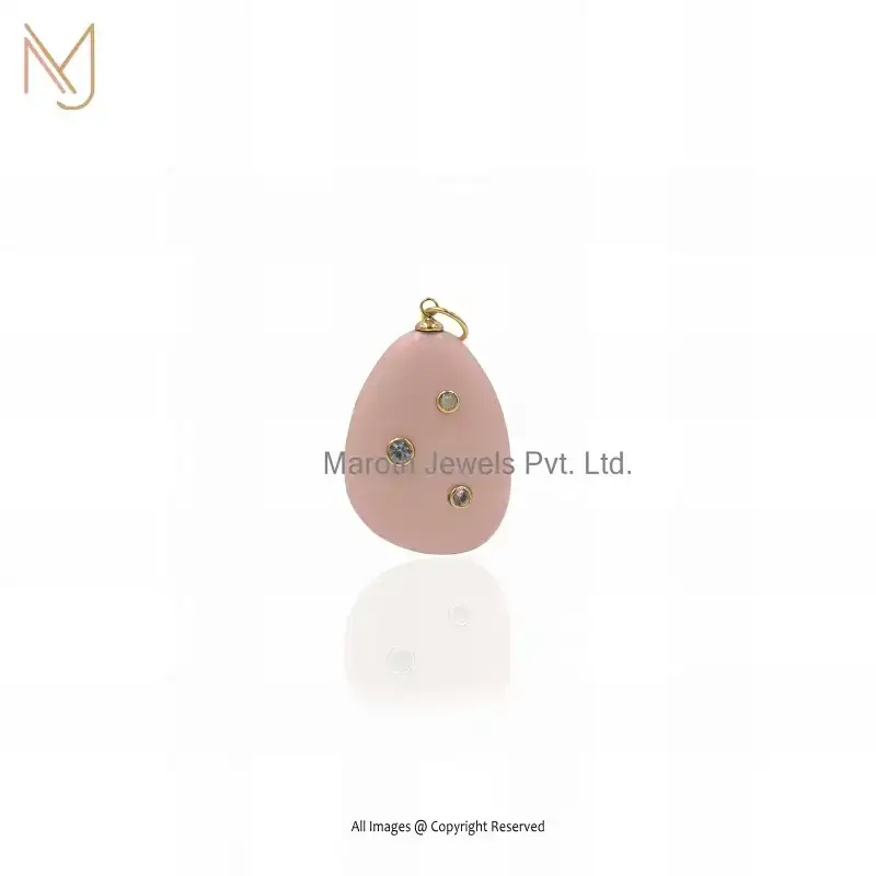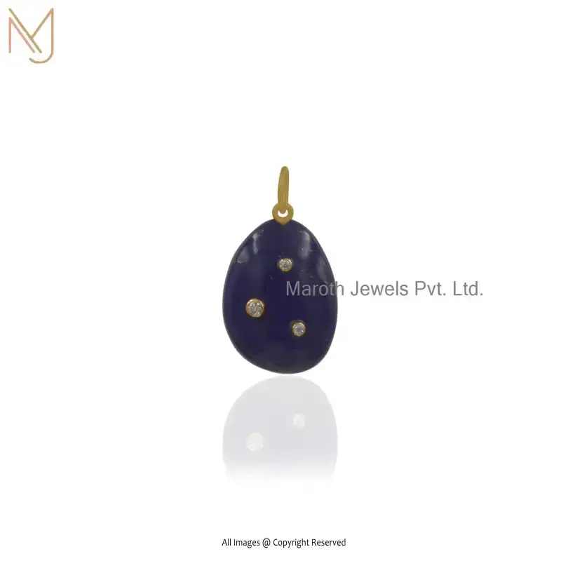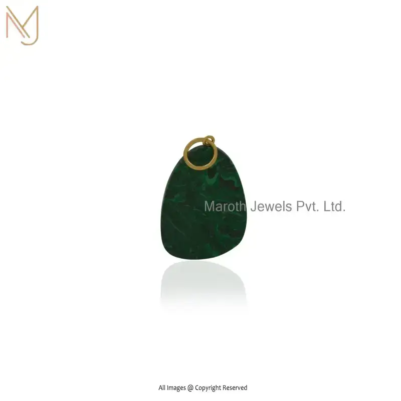 925 Silver Yellow Gold Plated Malachite & Cubic Zircon Teardrop Gemstone Pendant Custom Jewelry