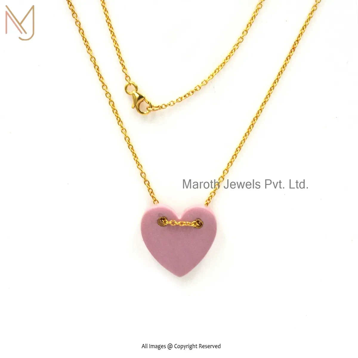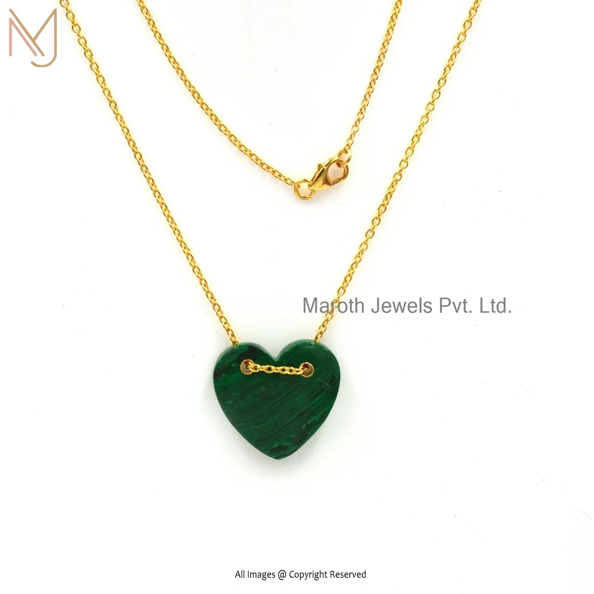 925 Silver Yellow Gold Plated Malachite Heart Pendant Custom Jewelry