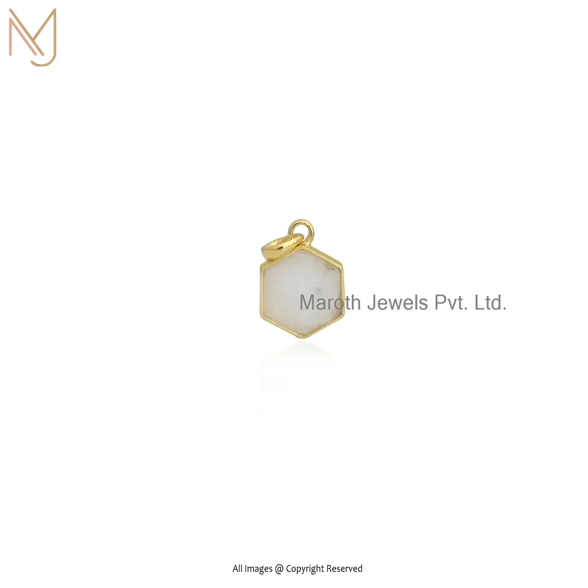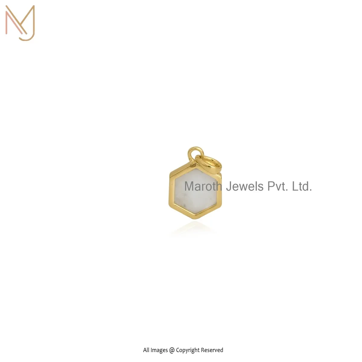 925 Silver Yellow Gold Plated Malachite Hexagon Pendant Manuafcturer