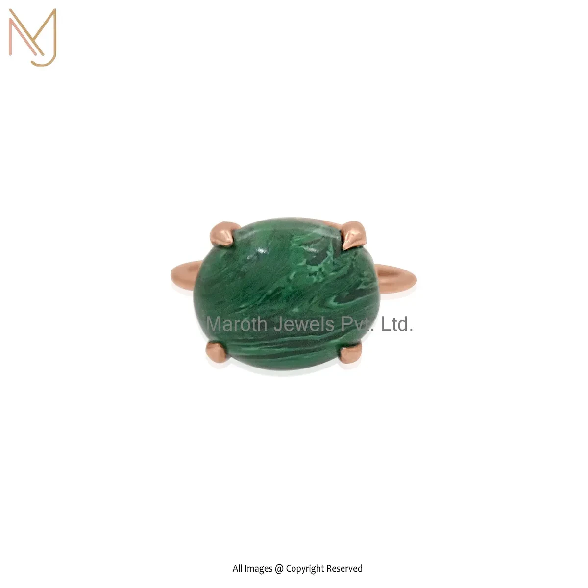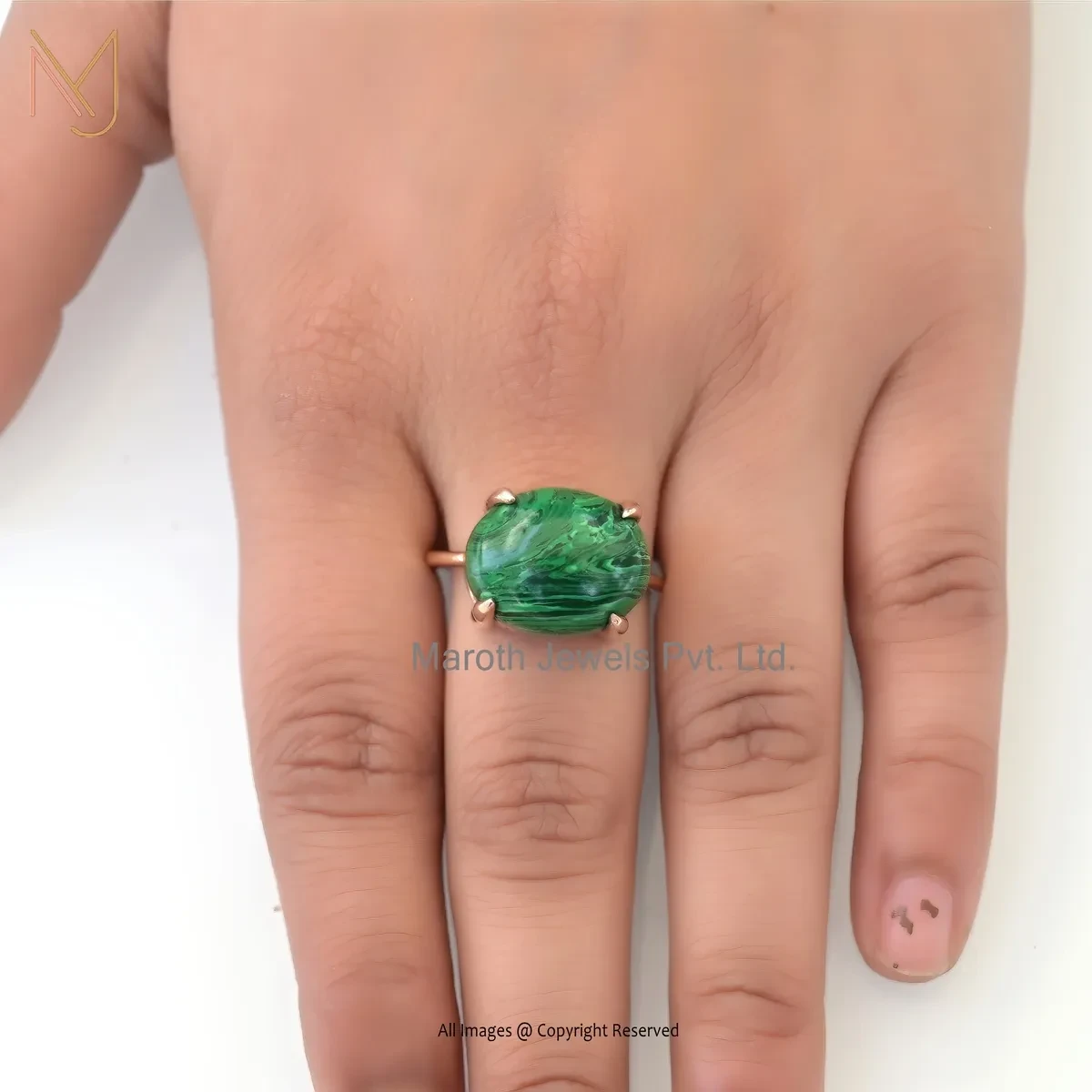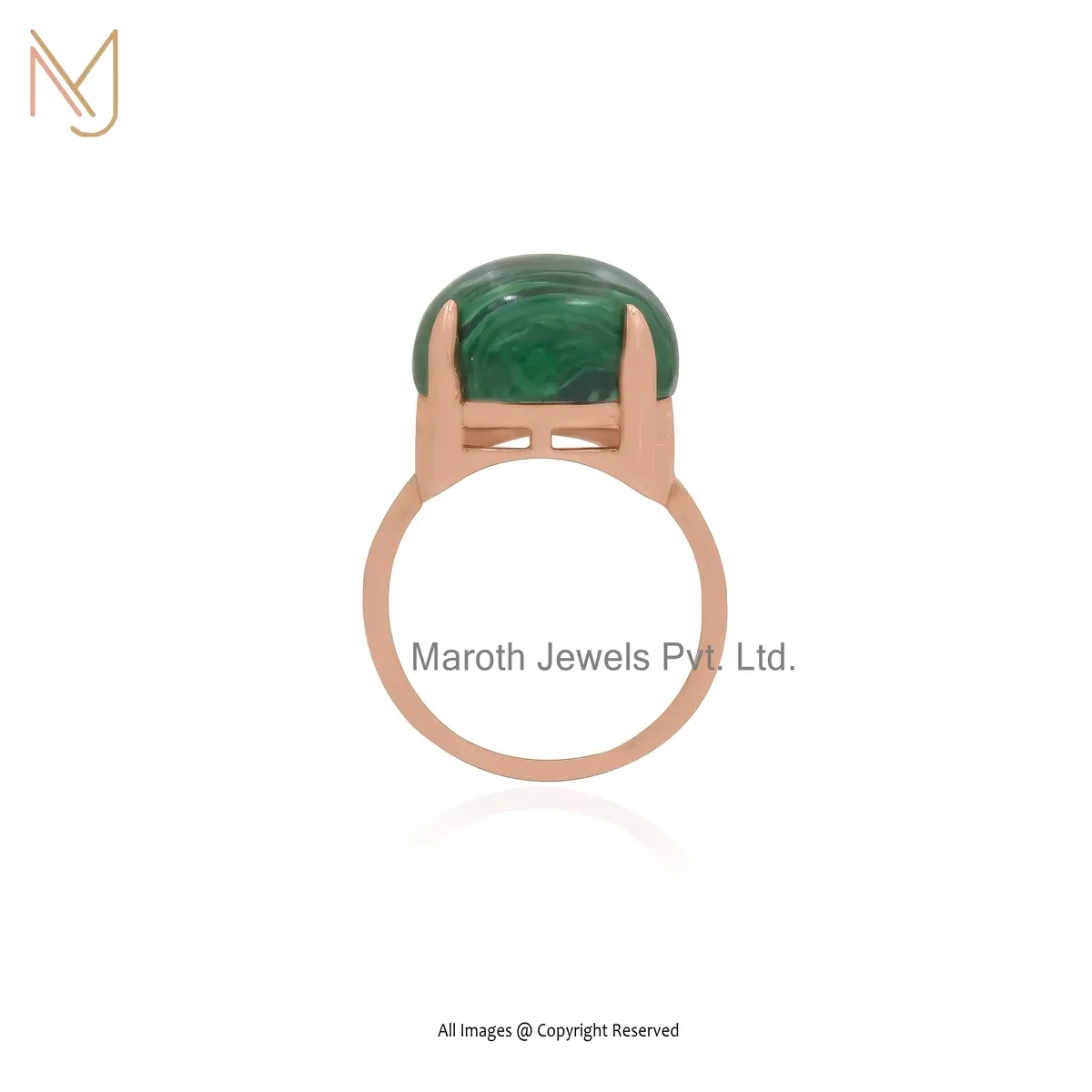 925 Silver Yellow Gold Plated Malachite Oval Cut Cabochon Ring Jewelry Supplier