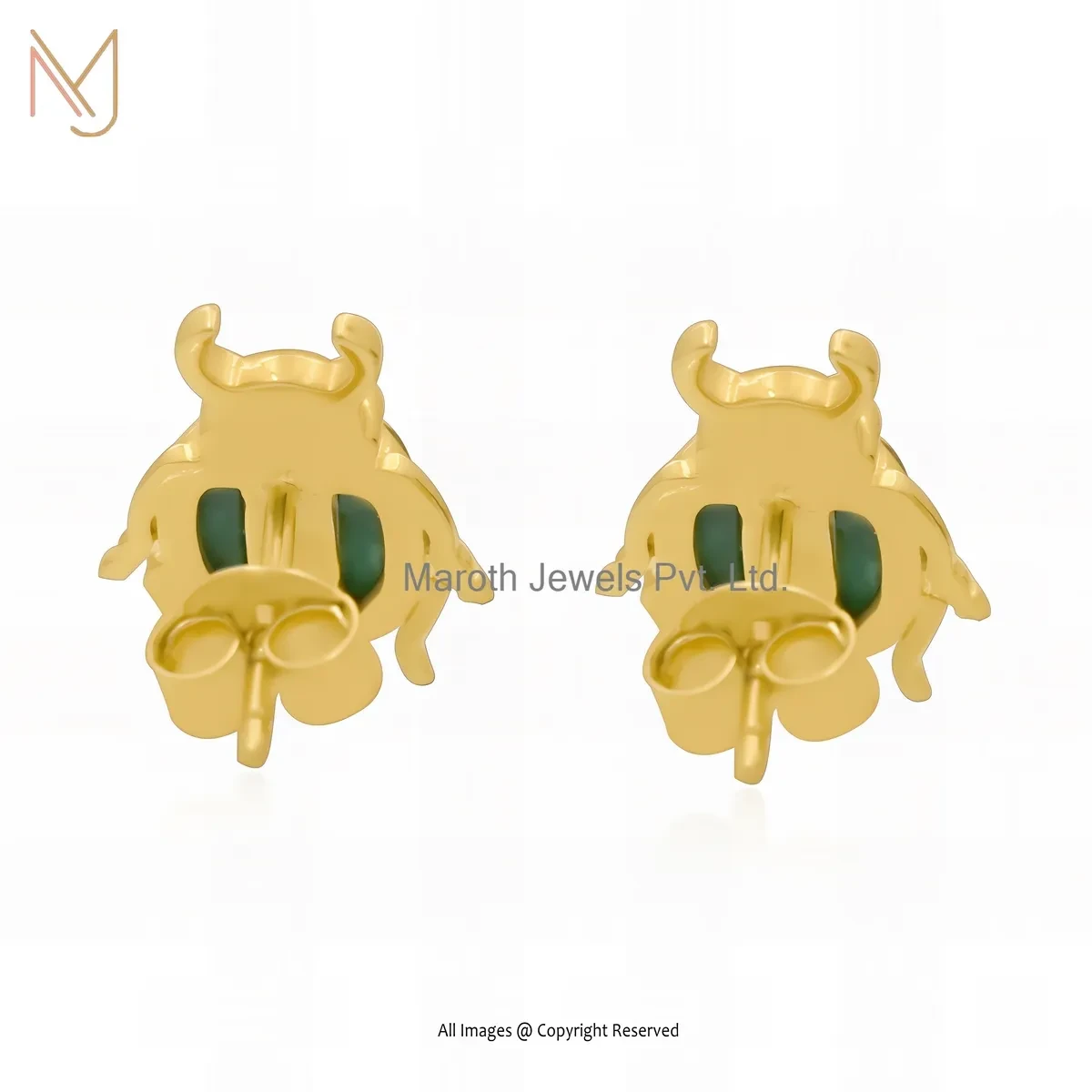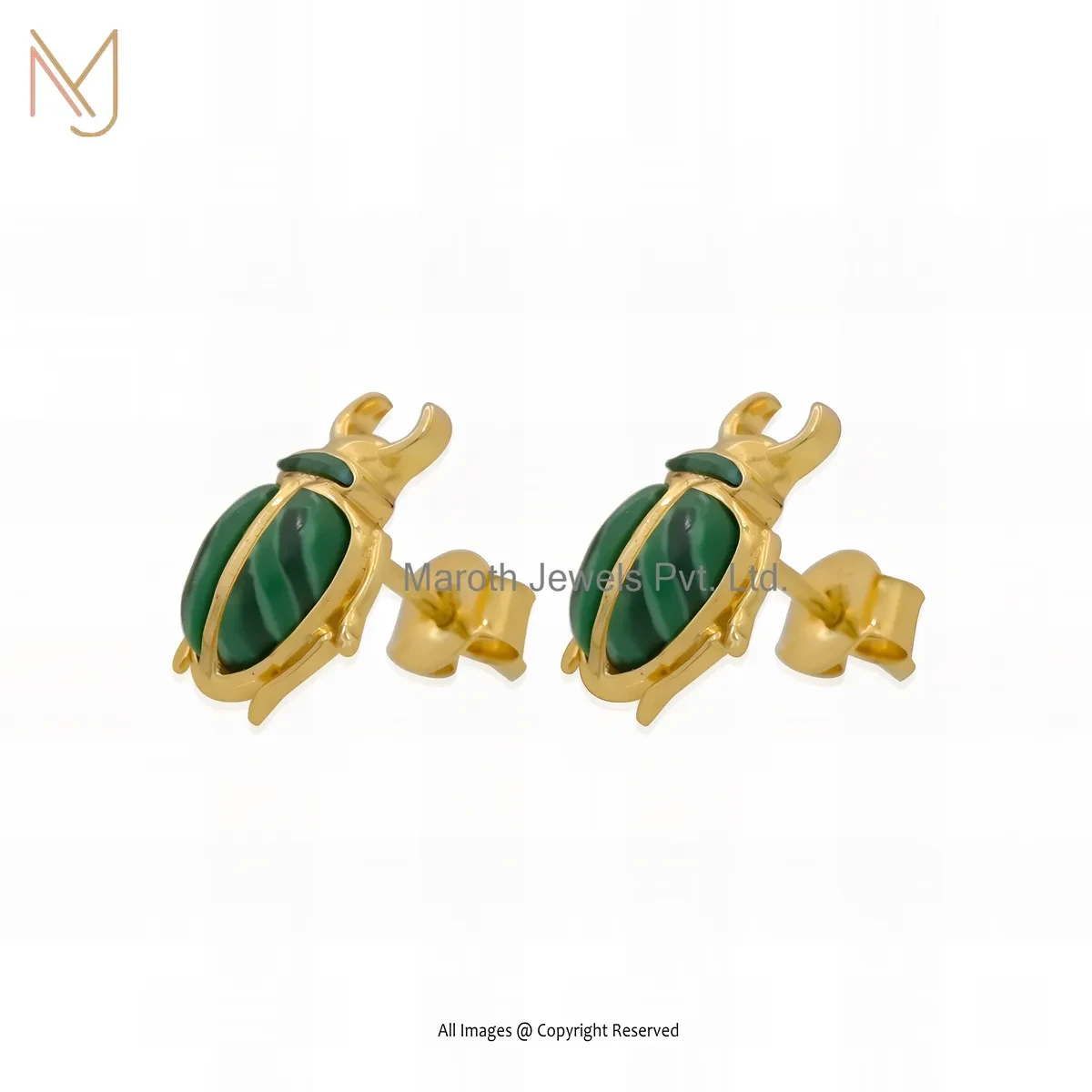 925 Silver Yellow Gold Plated Malachite Scarab Stud Earring Jewelry Supplier