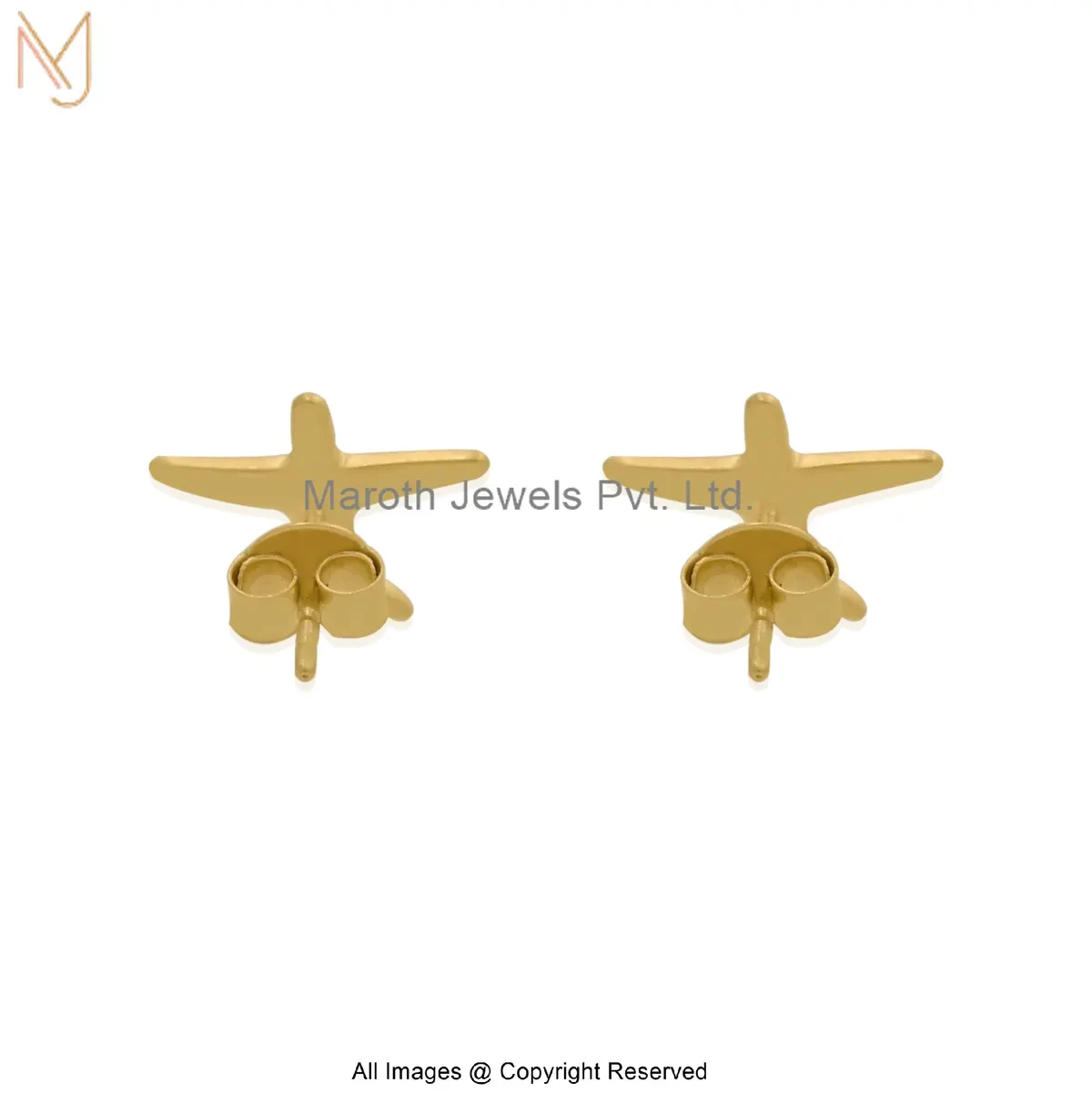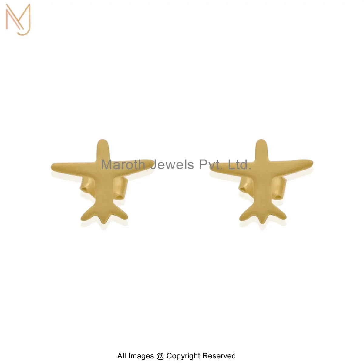 925 Silver Yellow Gold Plated Minimal Gold Airplane Stud Earrings Manufacturer